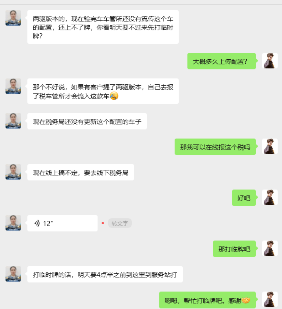 方程豹钛7的两驱Max版本的,现在验完车了,车管所还没有上传这个车的配置,还上不了牌,需要打临牌,这还收了1000元上牌费,还需要车主亲自去刷脸办临牌,那1000元上牌费收了办的事可真觉得冤屈?能否你们这边上传一下两驱的信息?