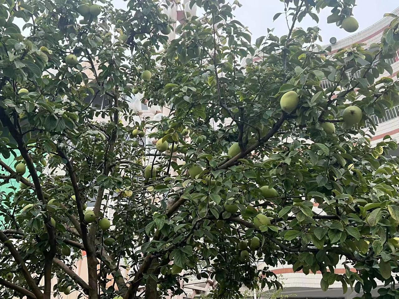 教学楼前有个小花园,花园里种着一棵木瓜树。 每次经过这里,总让人忍不住驻足。 青青的果子挂在叶间,风一吹就晃,像和孩子们招手。 木瓜树没人特意照料,却年年挂满枝,这就像孩子们悄悄埋下的梦想。 慢慢生长,静静成熟,这挂满枝头的,不只是木瓜,更像是孩子们的青春!