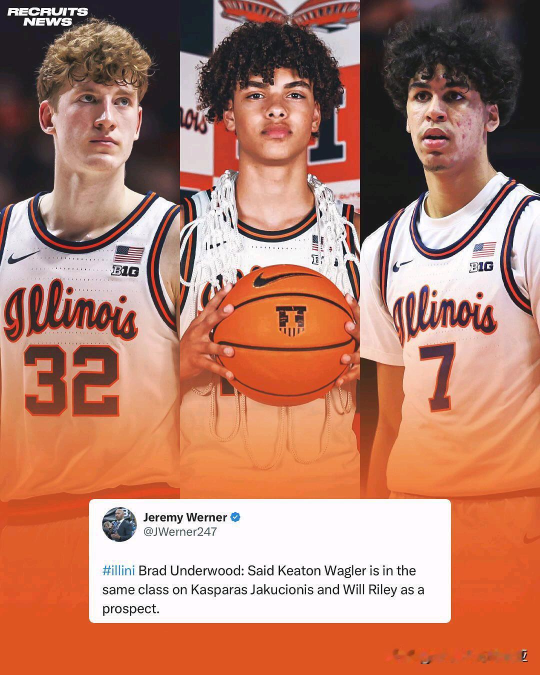 伊利诺伊主教练Brad Underwood称赞新人后卫Keaton Wagler,我们上赛季有两位OND球员Kasparas Jakucionis与Will Riley,我不想给Wagler太大压力,但他属于这一类球员,一位顶尖的竞争者,让我想起了Ayo Dosunmu,来自堪萨斯州的新生给教练组和队友留下了深刻的印象。
