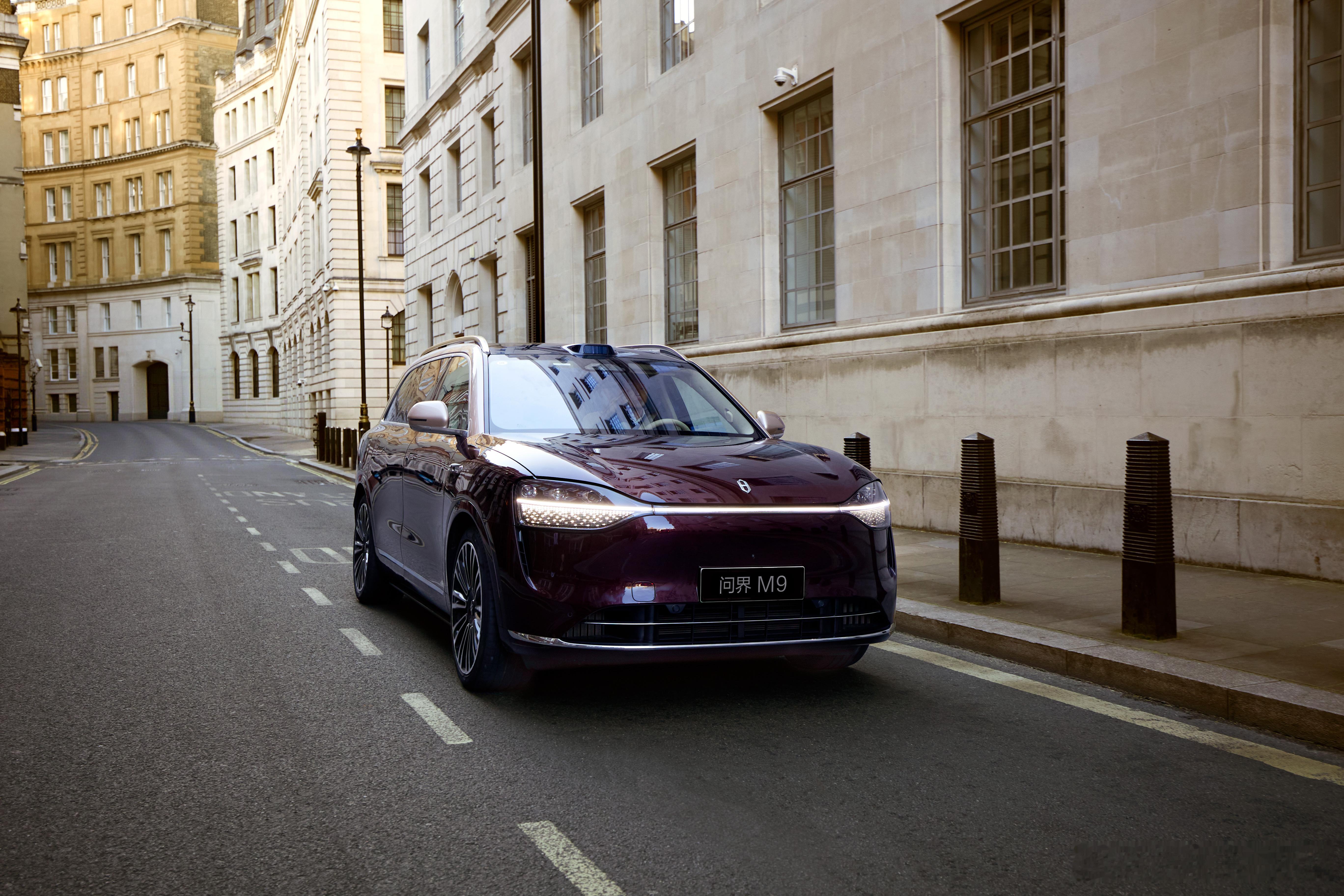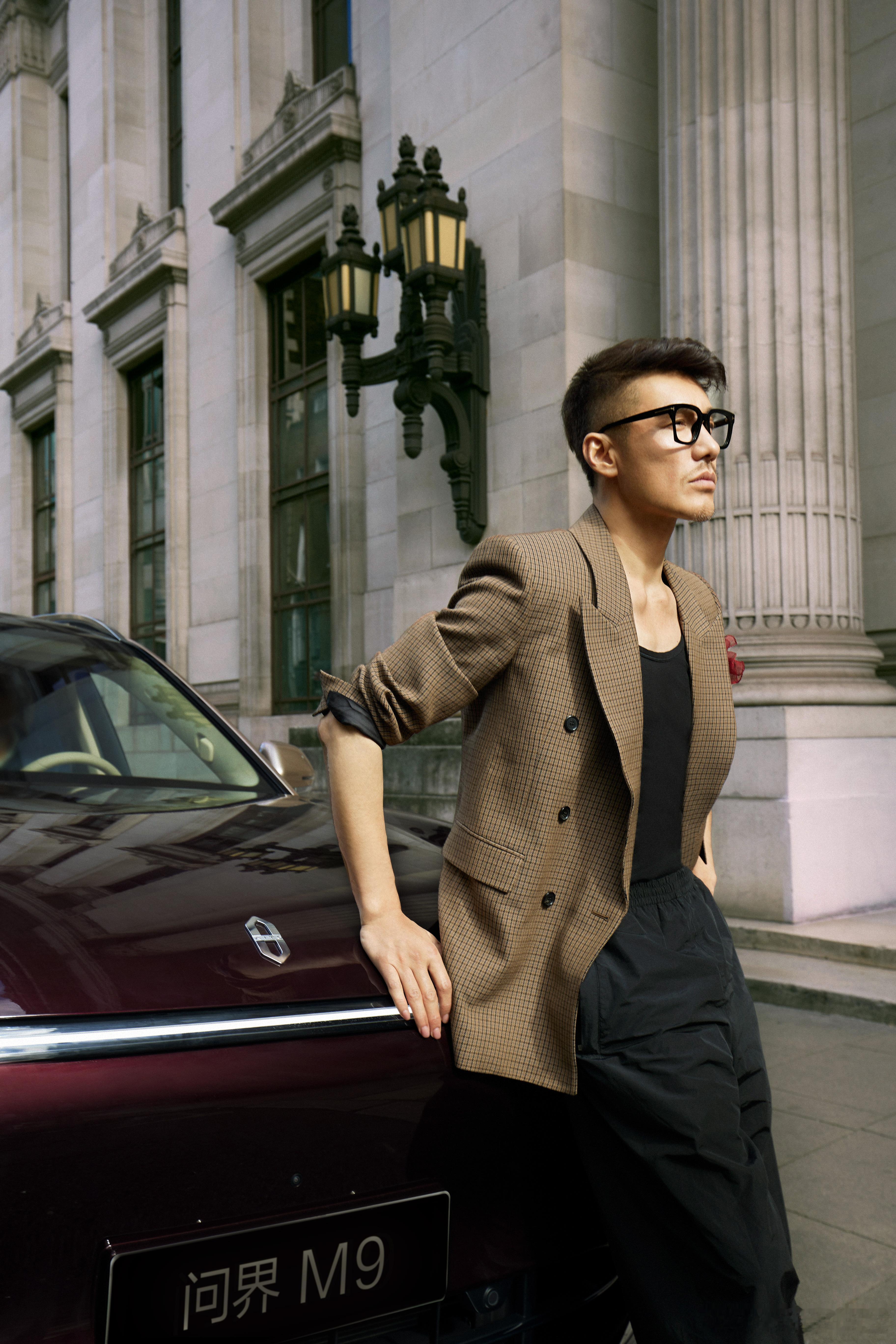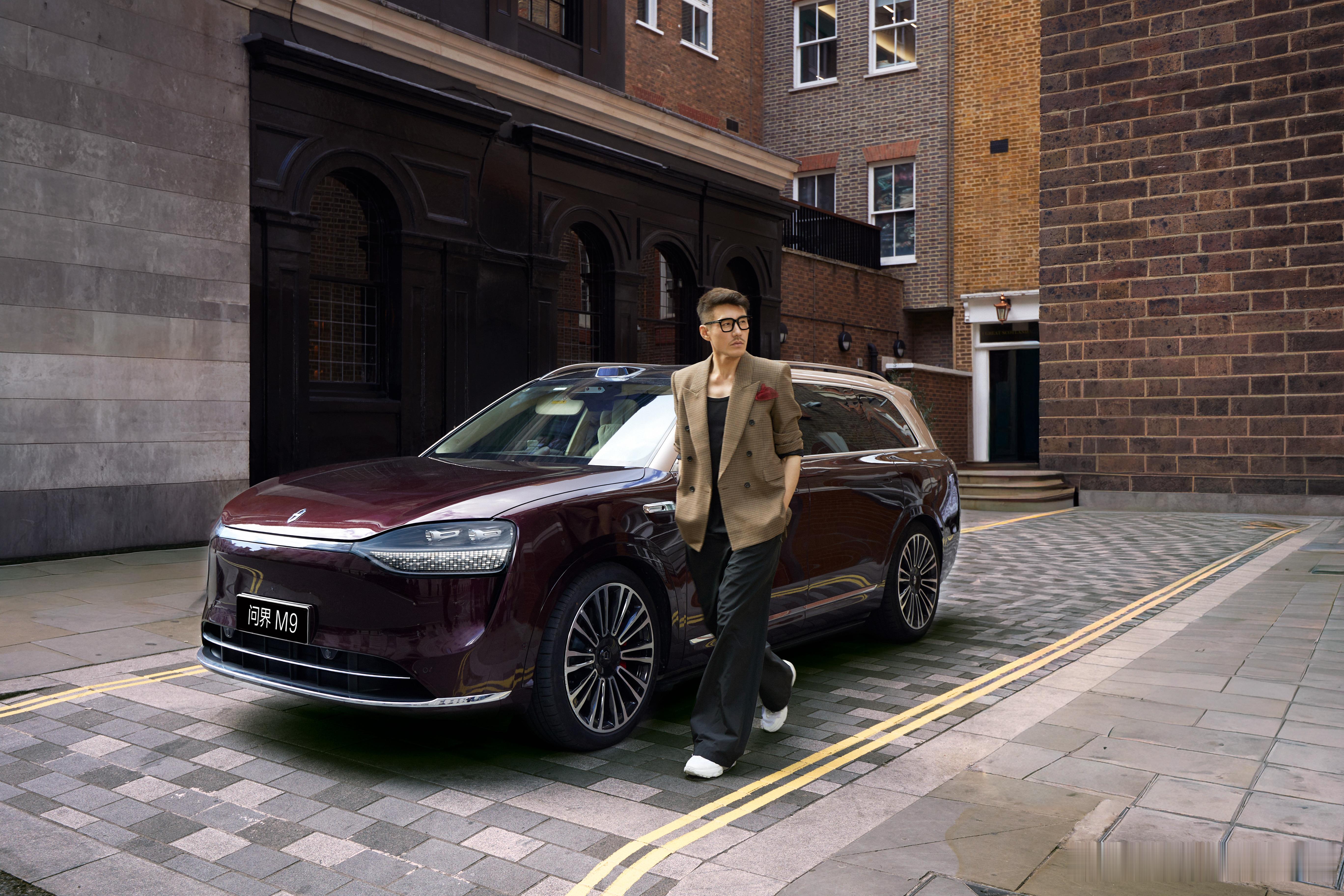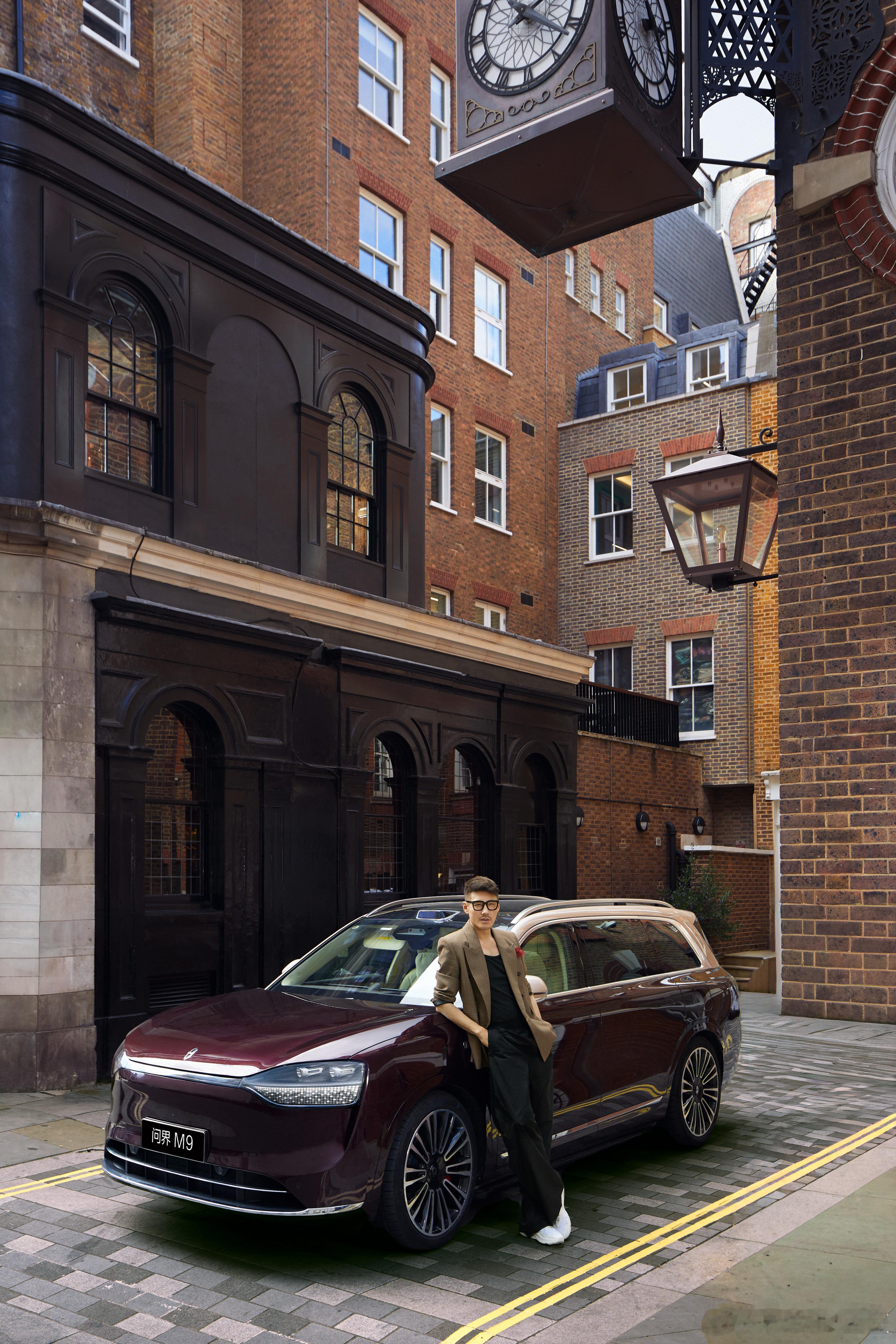 当英伦风情遇上科技美学,街巷之间尽现出行优雅。伦敦时装周国际大使胡兵与问界m9