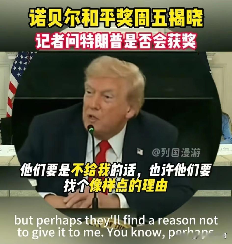 2025年诺贝尔和平奖很大可能不是特朗普! 诺贝尔文学奖10号颁布, 9号哈马斯和以色列都宣布加沙停火正式达成协议! 不得不承认, 加沙的正式停火,特朗普做出了很大的贡献。 特朗普心心念念的诺贝尔和平奖能否获得引起关注 。 有记者在白宫直接问特朗普,很多国家都提名你应该获得本届的诺贝尔和平奖,你认为你是否获奖? 特朗普说 :我不清楚 。我解决了7场战争,第8场战争也会结束, 我认为我最终会解决俄乌的问题。 历史上没有人解决过这么多问题,他们要是不给我的话,也许他们要找一个像样点的理由。 看来特朗普确实太想得到这个诺贝尔和平奖。 为什么他这么想?我认为 ,是因为奥巴马在2009年得到过诺贝尔和平奖, 他心里很不服气,他认为不能输给奥巴马 。 这是特朗普的个性决定的 。 2025年诺贝尔和平奖将于北京时间10月10日下午5点揭晓, 谁是获奖者将由挪威诺贝尔委员会决定。 特朗普获得诺贝尔和平奖的可能性极低 ,因为诺贝尔在遗嘱中指明和平奖应该授予“为促进民族国家团结友好,取消或裁减军备,以及为和平会议的组织和宣传尽到最大努力或做出最大贡献的人 ”。 虽然特朗普在促成哈马斯跟以色列达成加沙停火协议中作出了很大的贡献,但是以色列对加沙人民实施种族灭绝的暴行特朗普有不可推卸的纵容责任 , 跟诺贝尔设立诺贝尔和平奖目的“促进国家友好”的初衷相悖 。 并且时间点也不合适给特朗普颁发诺贝尔和平奖。 哈马斯跟以色列的停火协议达成时间的太晚,双方究竟能不能真正遵守停火协议,还有待观察 。 万一诺贝尔和平奖颁发给了特朗普,而后面哈马斯和以色列又违反协议重新开火, 对诺贝尔委员会来说就有一点尴尬了 。 其实每年诺贝尔奖评选都带有一定的政治色彩 , 诺贝尔奖获奖者总是让人很意外 , 说不定被以色列驱逐的环保少女贝通里会是今年诺贝尔和平奖的获奖者。 那就等待10月10号诺贝尔和平奖的揭晓吧。