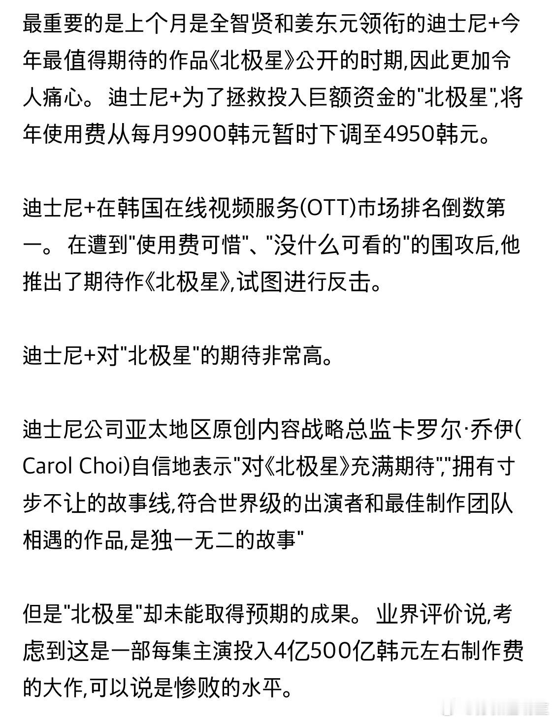 【热帖】全智贤期待作让人失望,如遭晴天霹雳,单集片酬4亿+迪士尼收视率破最低纪录