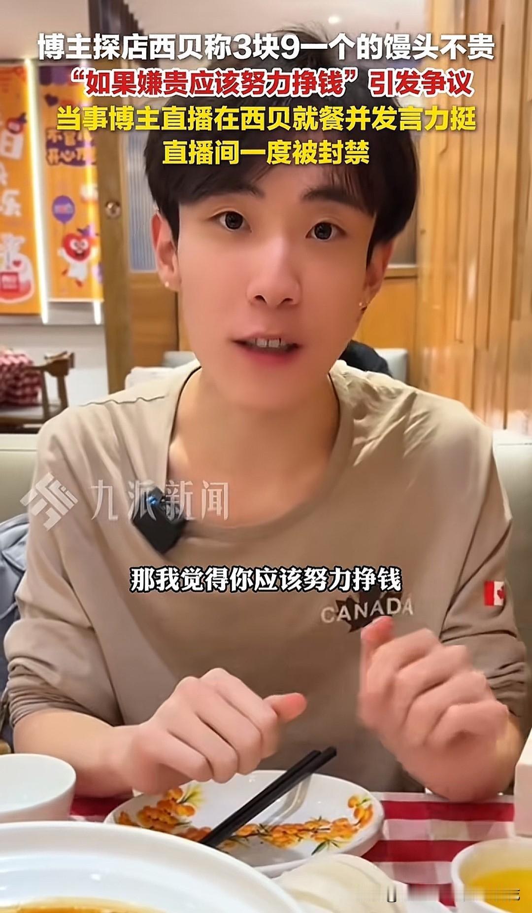 李佳琦后继有人了,一美食博主探店西贝直言3.9元的馒头超划算,嫌贵就应该努力挣钱。该言论和李佳琦卖眉笔如出一辙,你嫌贵,他嫌你穷,嫌你不够努力,嫌你吃不起3.9元的馒头……正常人3.9元可以买6个馒头了,这是吃不起的事吗? 很多人可能不太知道3.9元的馒头包含了哪些,馒头本身是不值钱的,去包子铺里买一模一样的馒头,也就几毛钱,但是它有包装,有品牌,有能供你就餐的地方,而且环境不赖,服务卫生可以,这些就值三块多了。 如果刚需是充饥,吃3.9元的馒头就是大冤种。如果刚需是生活,对环境要求很高,那么3.9元、39元、399元的馒头,依然会有人消费。