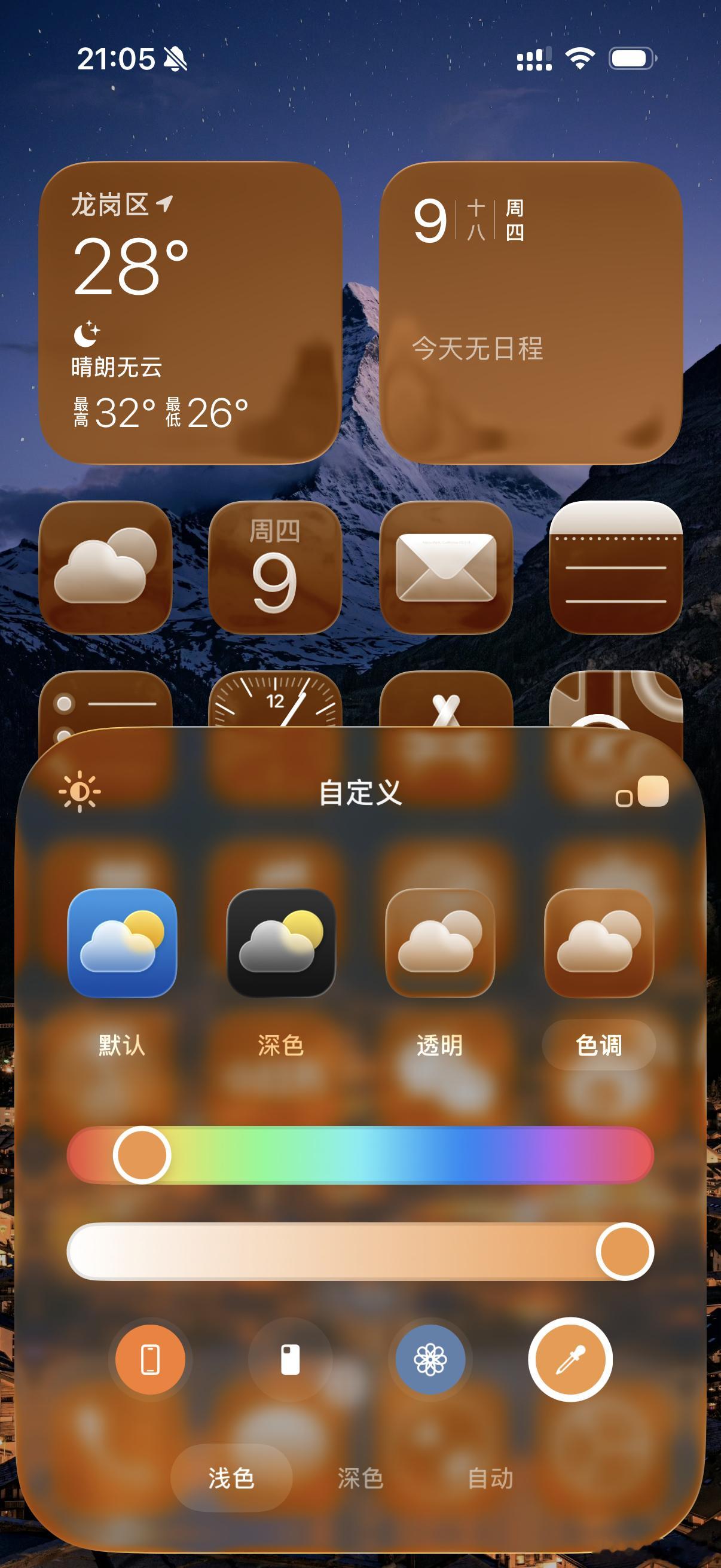 iOS26的这个图标色调自定义还挺好玩,改了一个与壁纸以及机身差不多的颜色,iPhone17 Pro的整体性与统一性立马就上来了,高级了不少![doge]