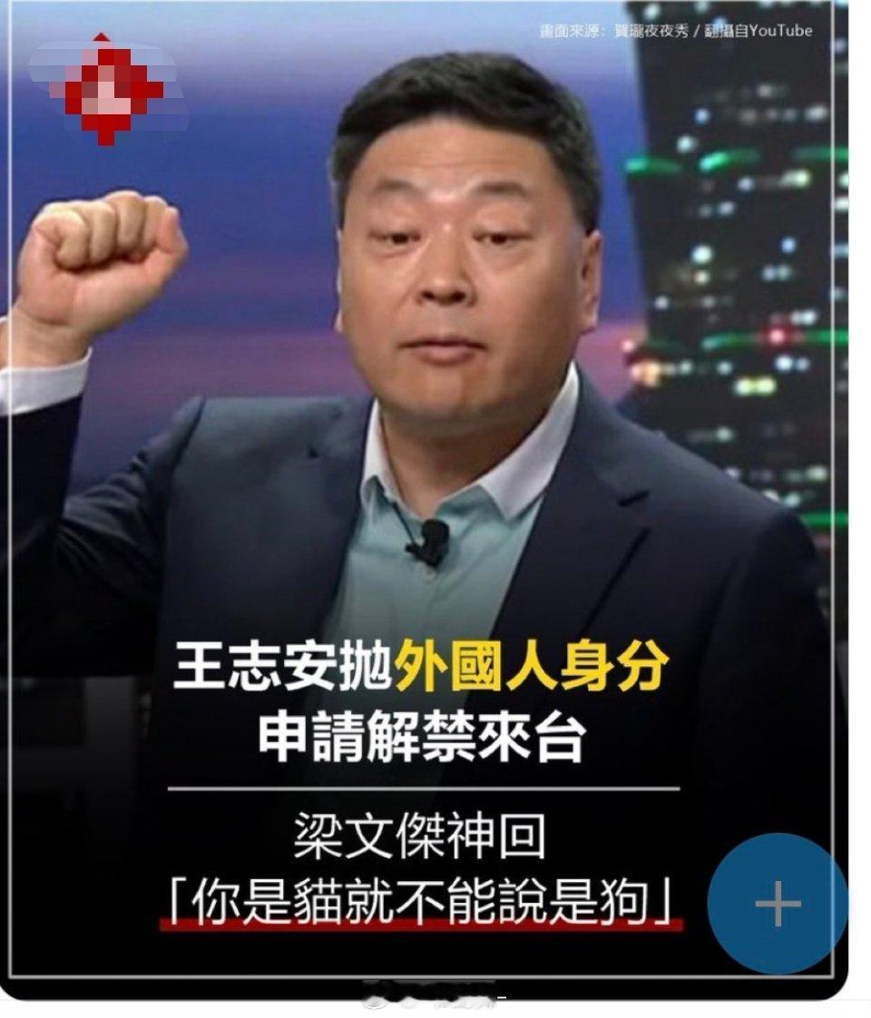 梁文杰在陆委会例行记者会表示,王志安先生喜欢表达独特的观点,也确实有一些独特性,例如这次就是硬要用「外国人身分」来申请,要展现独树一帜的见解。但对我们来说,你拿什么护照,你就是用什么样的规则,「如果你是猫,你就不能说自己是狗」。[笑cry][笑cry]