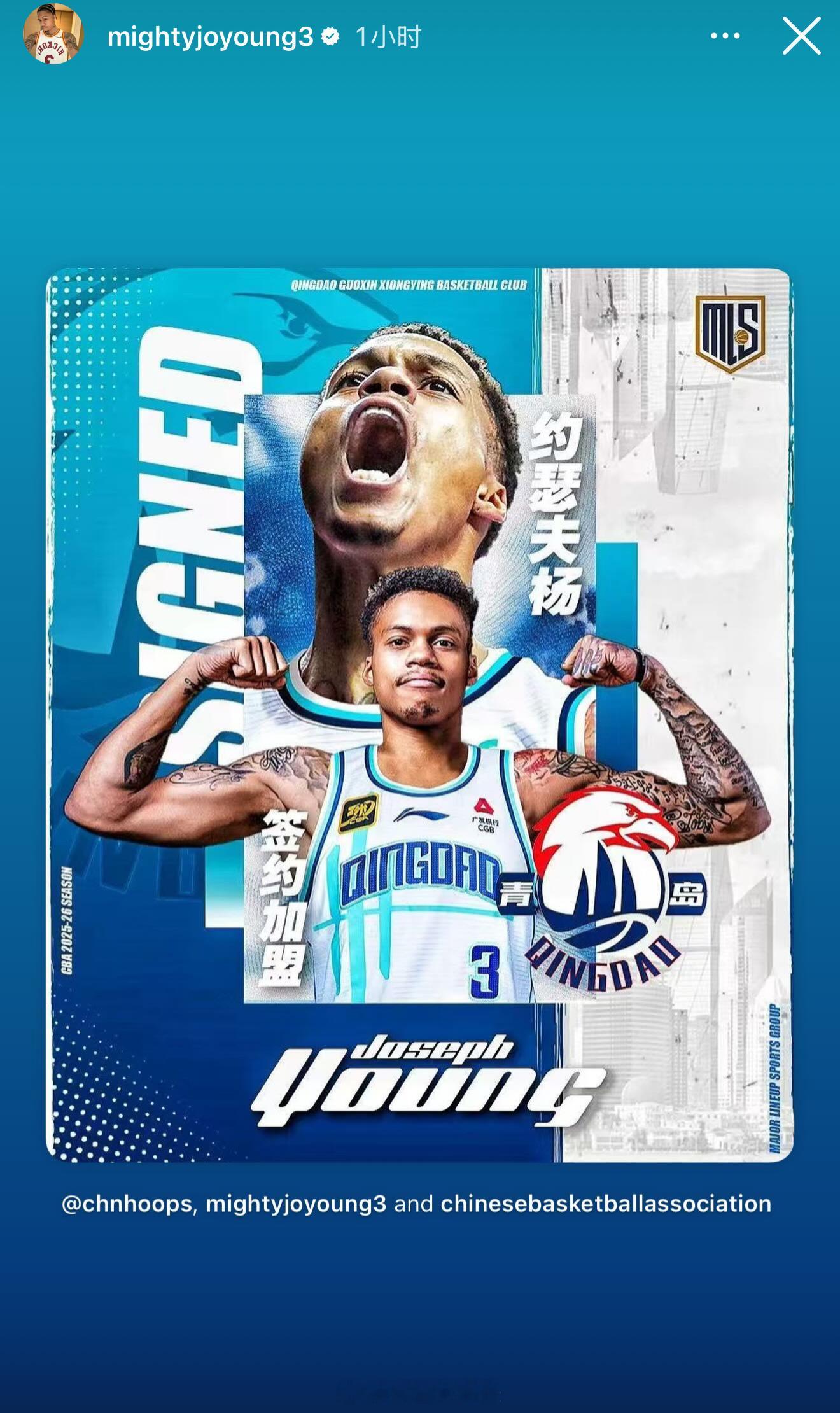 约瑟夫·杨自宣加盟青岛男篮,后者新赛季四外援:米奇、汤普森、韦瑟斯庞、杨。cba