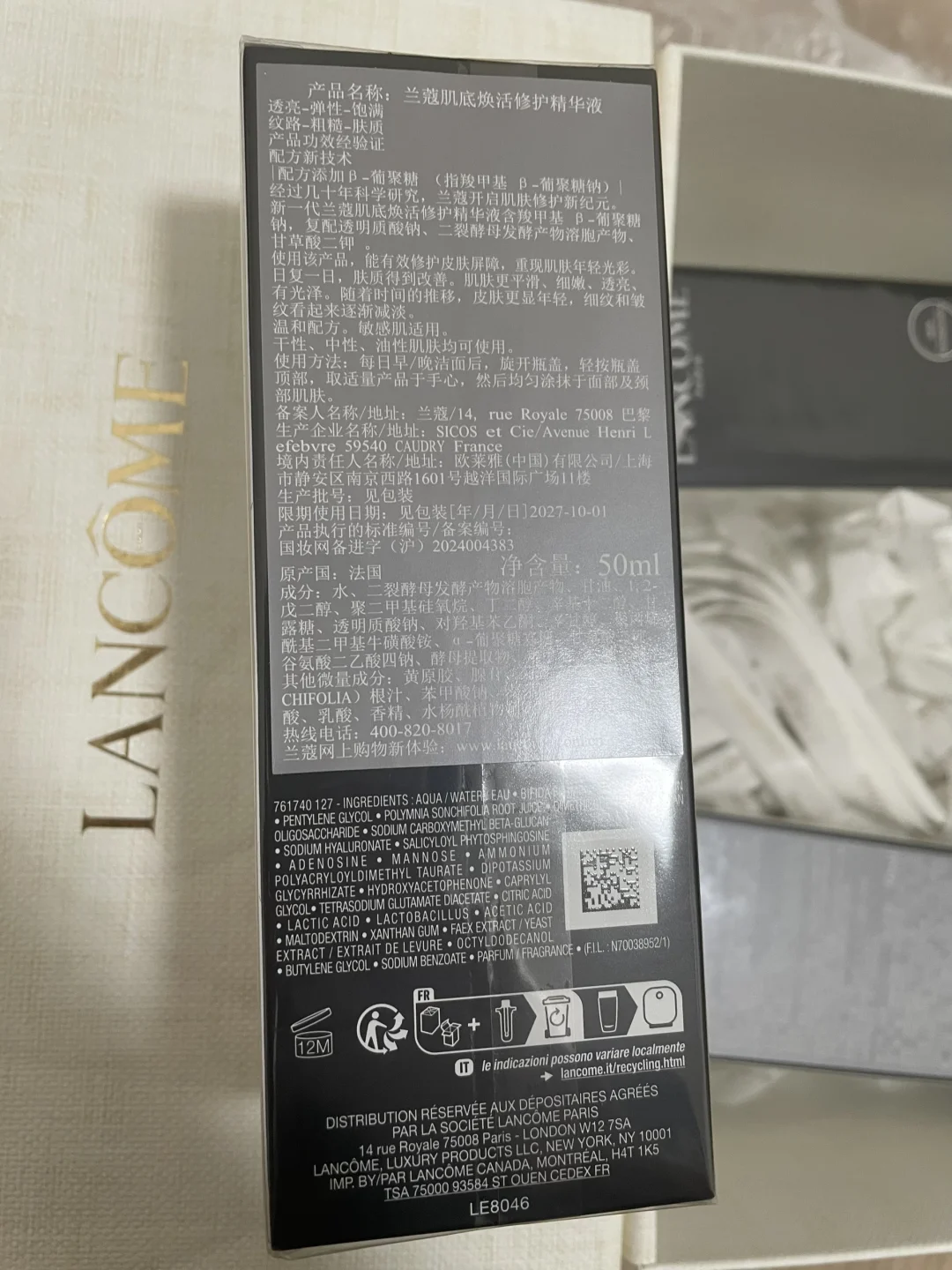 日期到27年10月 就一瓶50ml的 兰蔻超修小黑瓶精华
