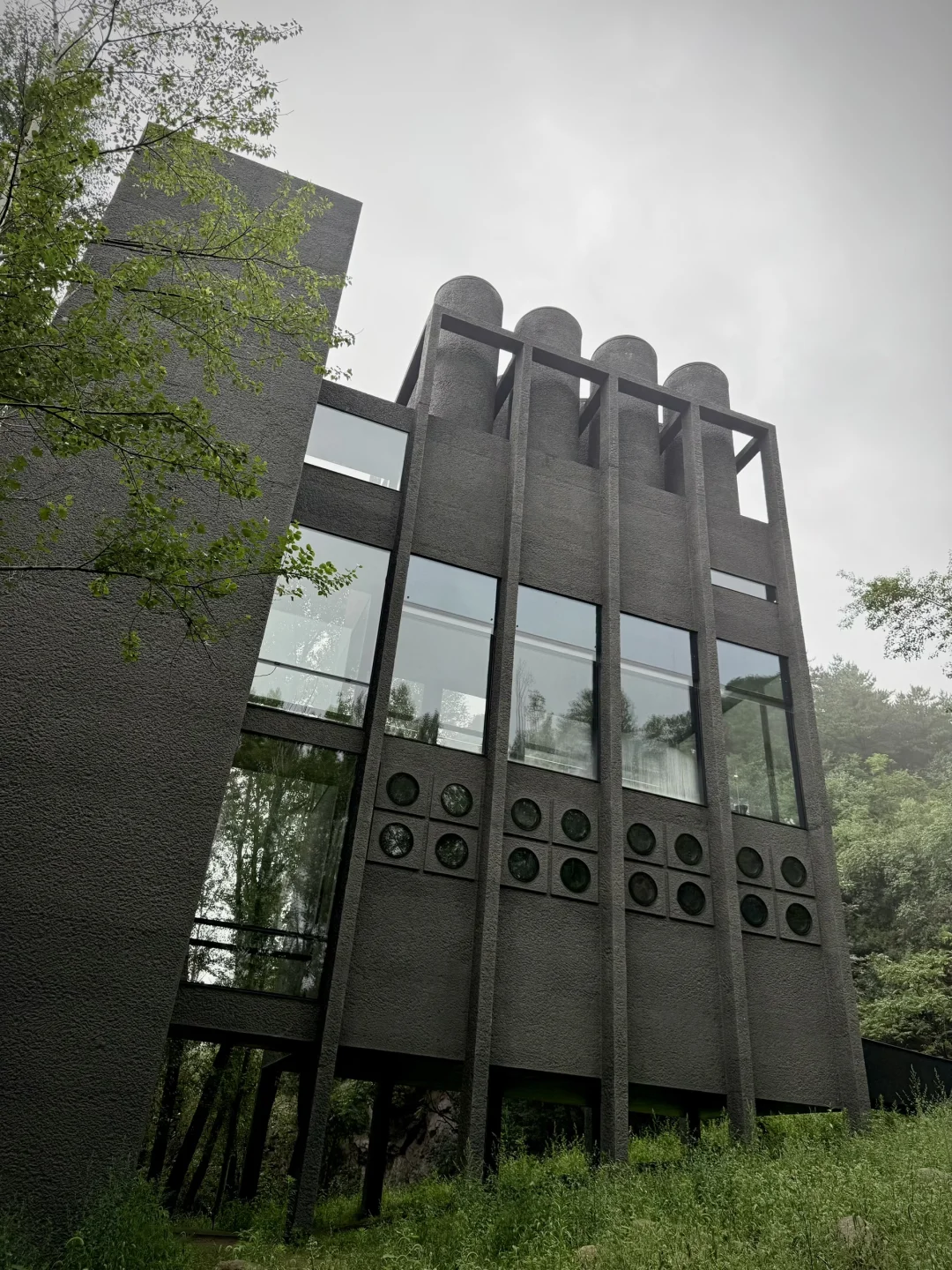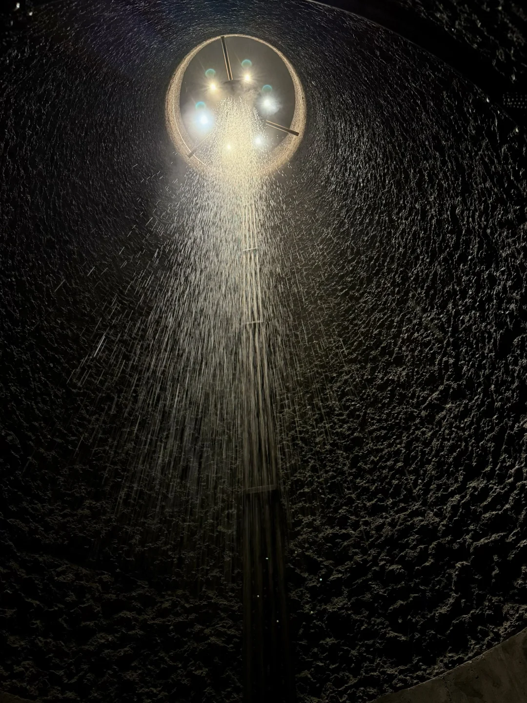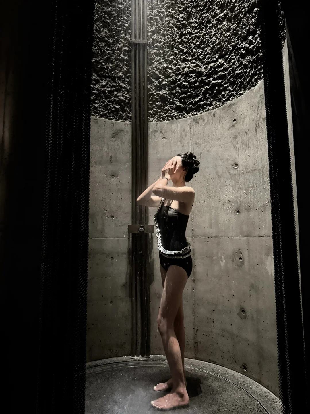 来到阿那亚的雾灵山 把汤泉全部体验了 哈哈哈 这个眼石汤泉的设计理念我蛮喜欢的 整栋在郁郁葱葱的树林里矗立着 灰色的颜色加上设计感强的外观美感 当我走进去看着寡淡的装修风格 我喜欢~