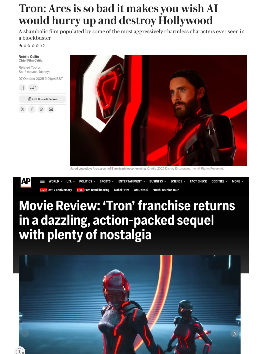🤯 更有人说《创:战神》是2025年度最差,也是迪士尼的新下限,剧情空洞到人神共愤。