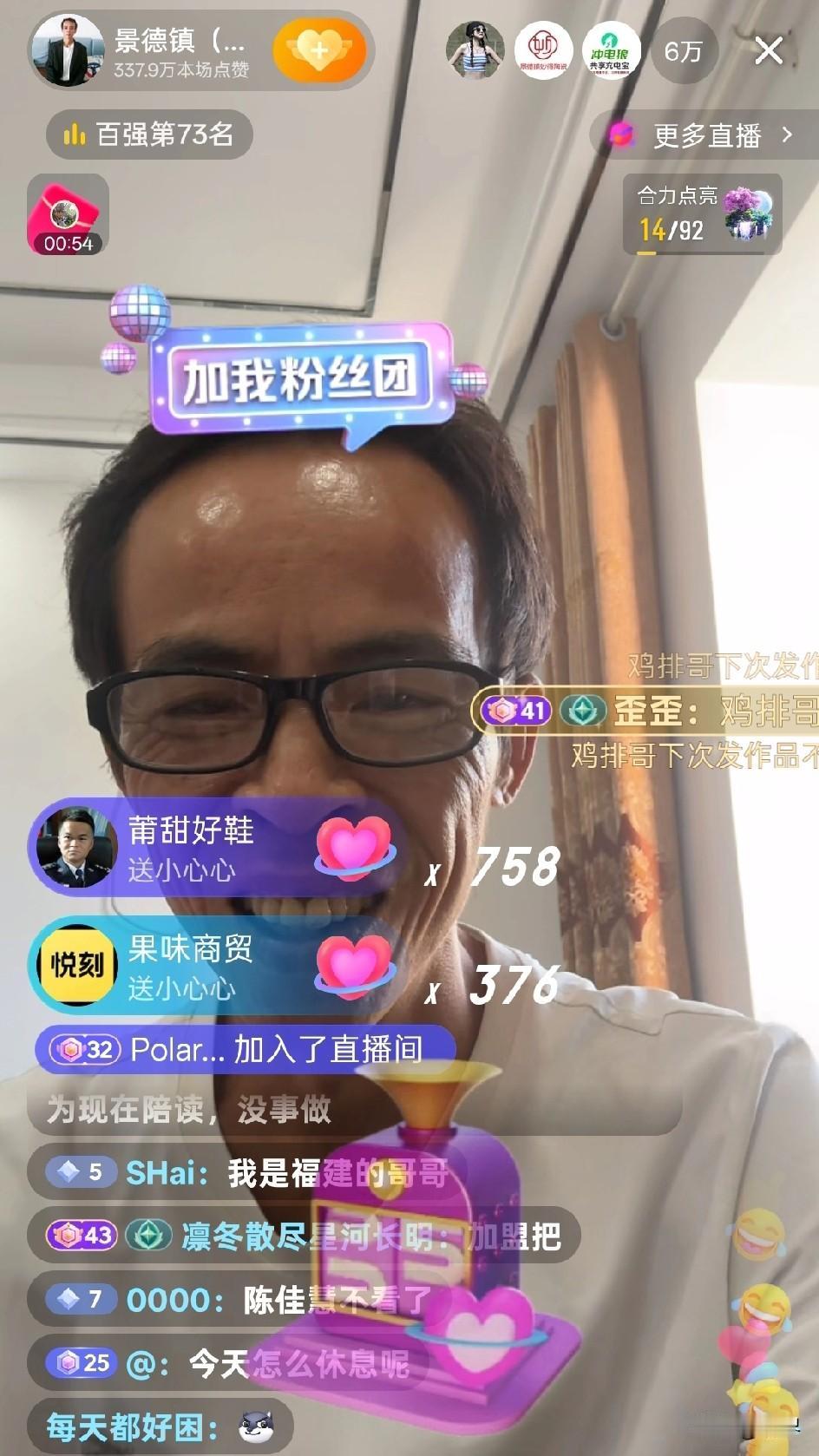 “鸡排哥”今天终于休息了! 但是,我怎么觉得他比出摊更累呢? 原来是因为这场直播,7万人在线,观场超千万,全程时间3个半小时,粉丝的心意刷的满屏都是,“鸡排哥”更是被搞得视觉疲劳、眼花缭乱了,这能不累吗? “鸡排哥”全程都在不停的跟粉丝交流着,有问必答丝毫没有歇息,还时刻保持着微笑,表情管理十分到位,真的是太敬业了,不得不为鸡排哥点赞。[赞][赞] 虽然今天休息没有出摊,但他这3个半小时的直播,真的一点都不比出摊累。 出摊只需要应对线下摊前的几位顾客,最多不超10个人。然而,线上却要应对在线几万人的观众。 线下顾客再怎么多,鸡排哥都能做到“做完你的,做你的,做完你的再做他的……”,场面如何复杂都能游刃有余的控制。 但是,线上就不行了,满屏的留言,鸡排哥也就只能捡一部分进行答复了,面对大家如此热情刷出的“跑车、火箭、嘉年华”等等心意,鸡排哥也只有喜笑颜开的回复着谢谢。 我以为国庆放假完后的第一天,大家都忙着上班,没人去看鸡排哥直播,谁曾想啊,这人数比国庆期间还多,放假期间最多也就5万,这上班第一天居然还到7万了。[赞][赞] 我就在想到底怎么个回事,难道是因为国庆期间大家都在外面玩没时间去观看,现在上班了反而更有时间摸鱼了?[捂脸][捂脸] 对此,大家怎么看?欢迎评论区留言讨论。