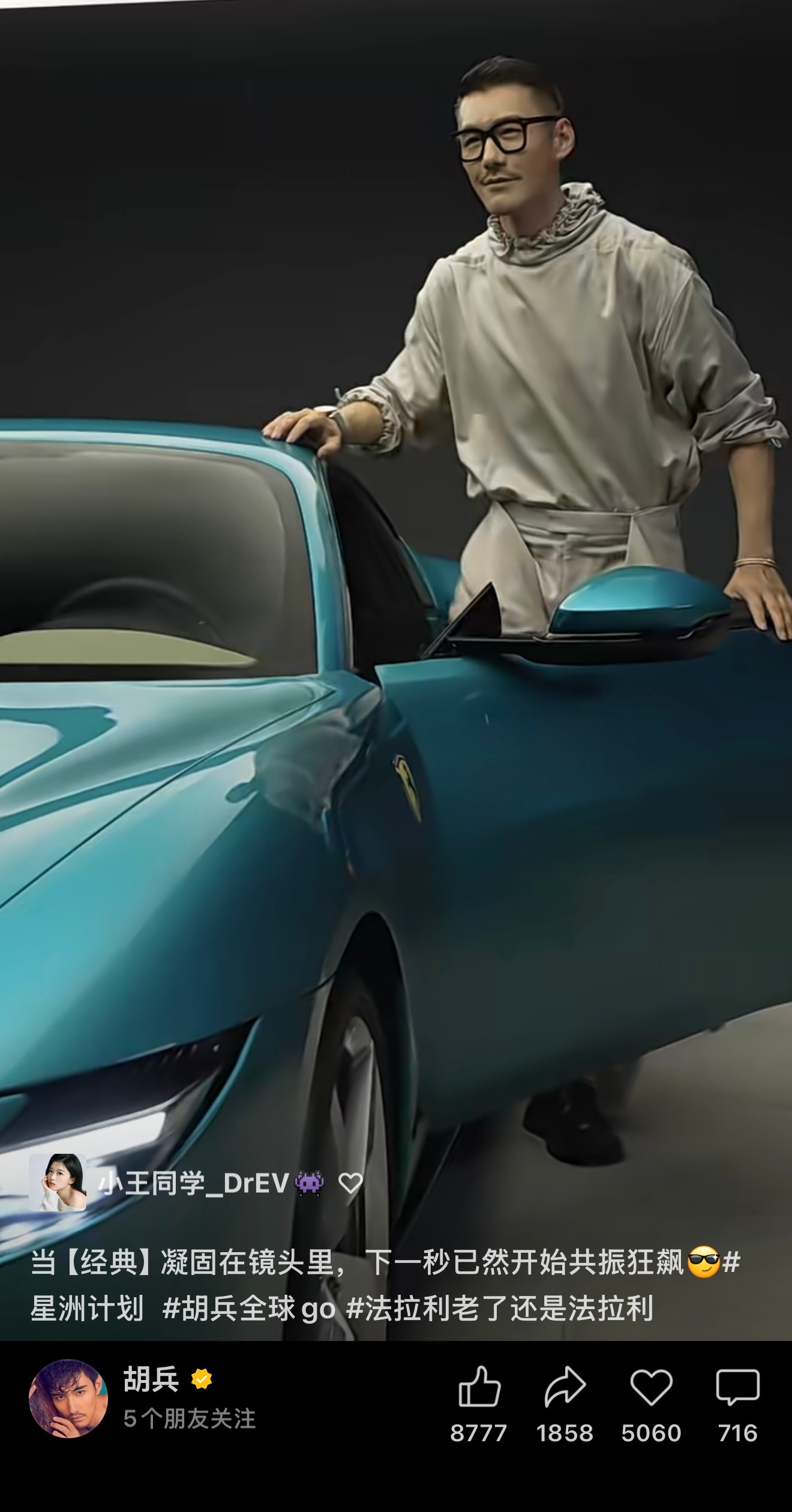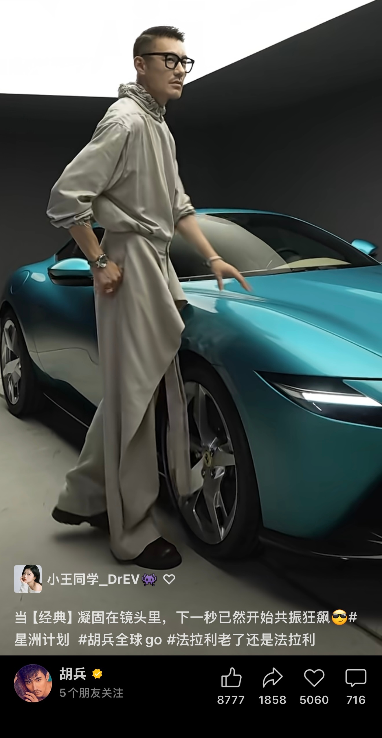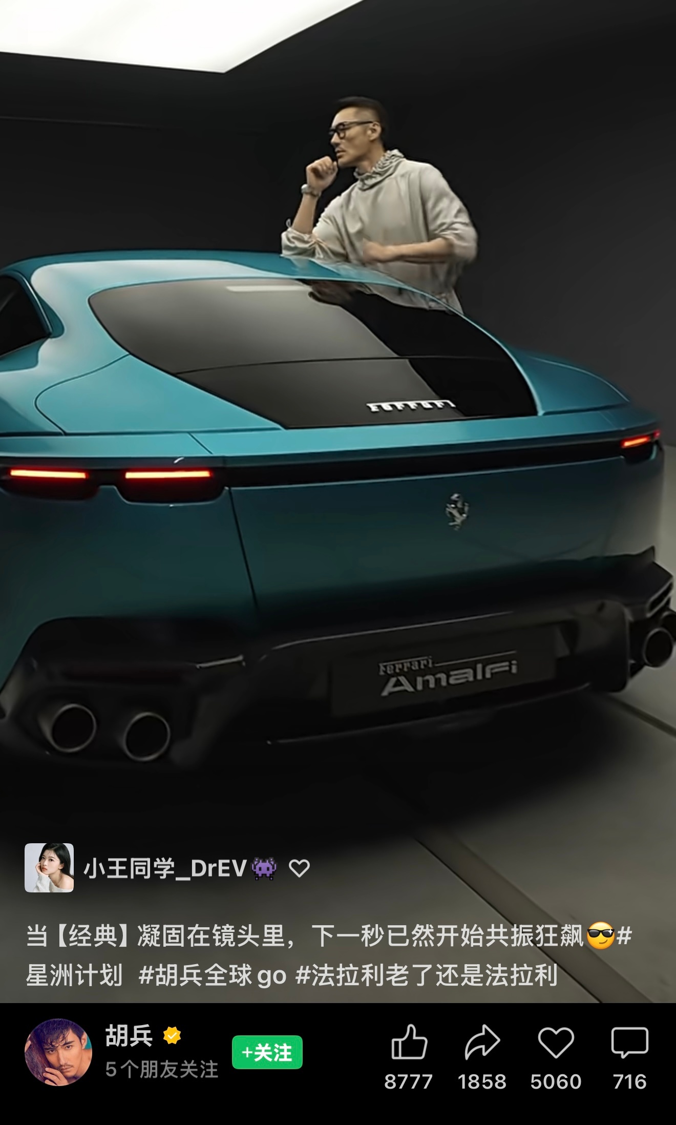 因为胡兵的上一个汽车代言是法拉利的新车Amalfi[允悲]