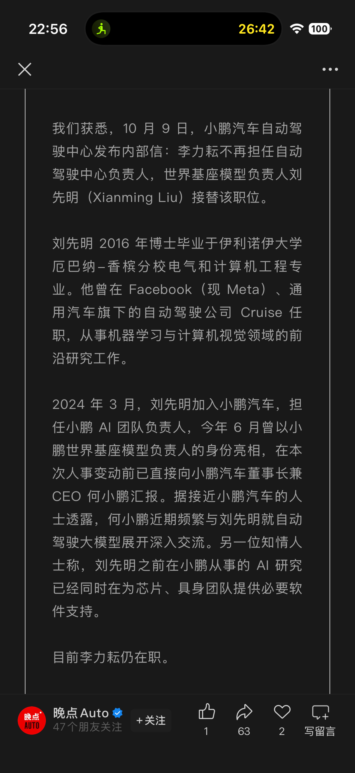 晚点专报[好运连连][好运连连]李力耘不再担任小鹏智驾负责人!自动驾驶