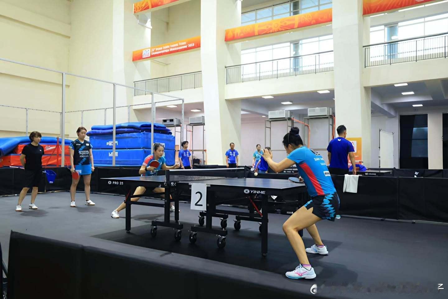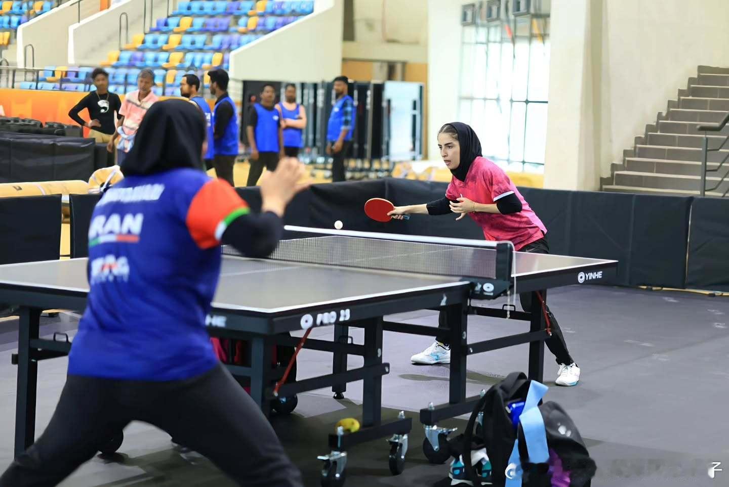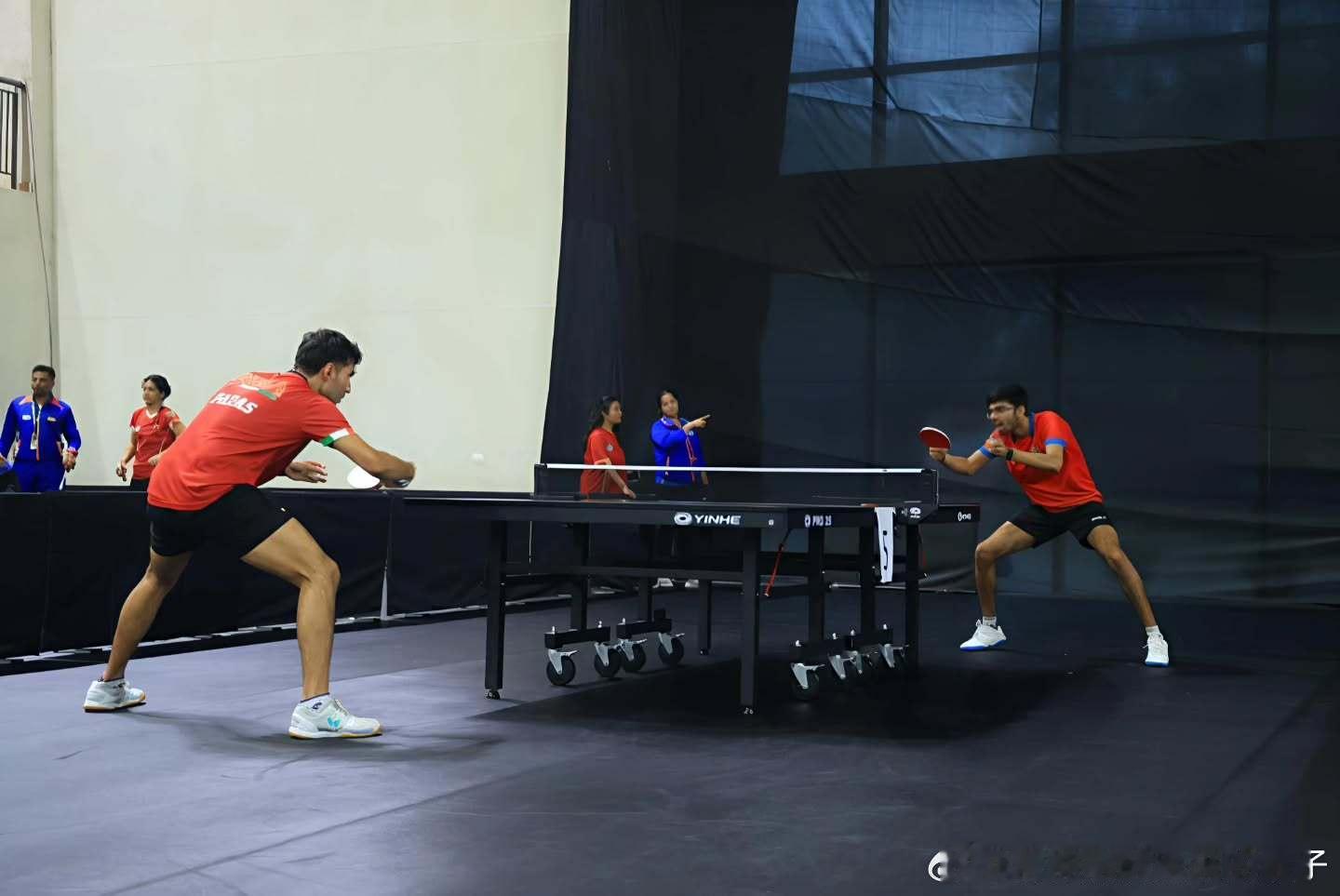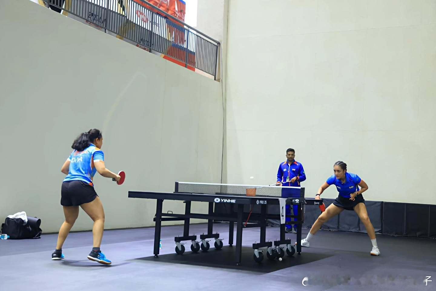 进行2025国际乒联印度团体亚锦赛适应训练的印度队、韩国队、伊朗队📷