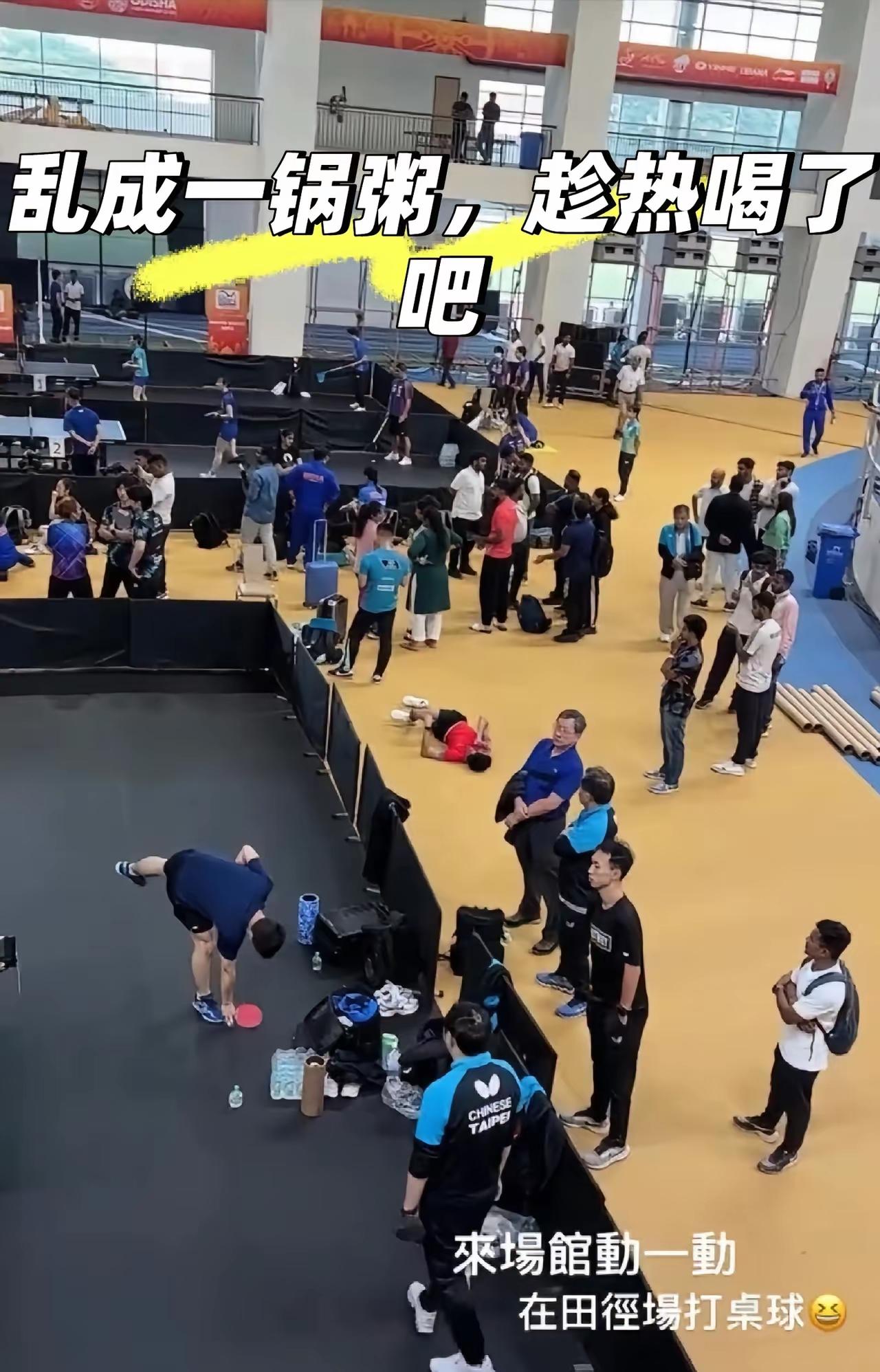 伊朗教练称亚锦赛举办地遭遇恶劣天气! 印度亚锦赛举办地不仅临时借用一个田径场做亚锦赛比赛场地,伊朗教练还称举办地正在遭受大雨+闪电+强风的恶劣天气。 除此之外,10月9日运动员已经上训了,但地胶还在铺设中。 人们担心的酒店水质问题还是来了,自来水混浊不堪,房间也不够卫生。 搞不明白,为什么非要把乒乓球亚锦赛举办地选在印度,简直了!