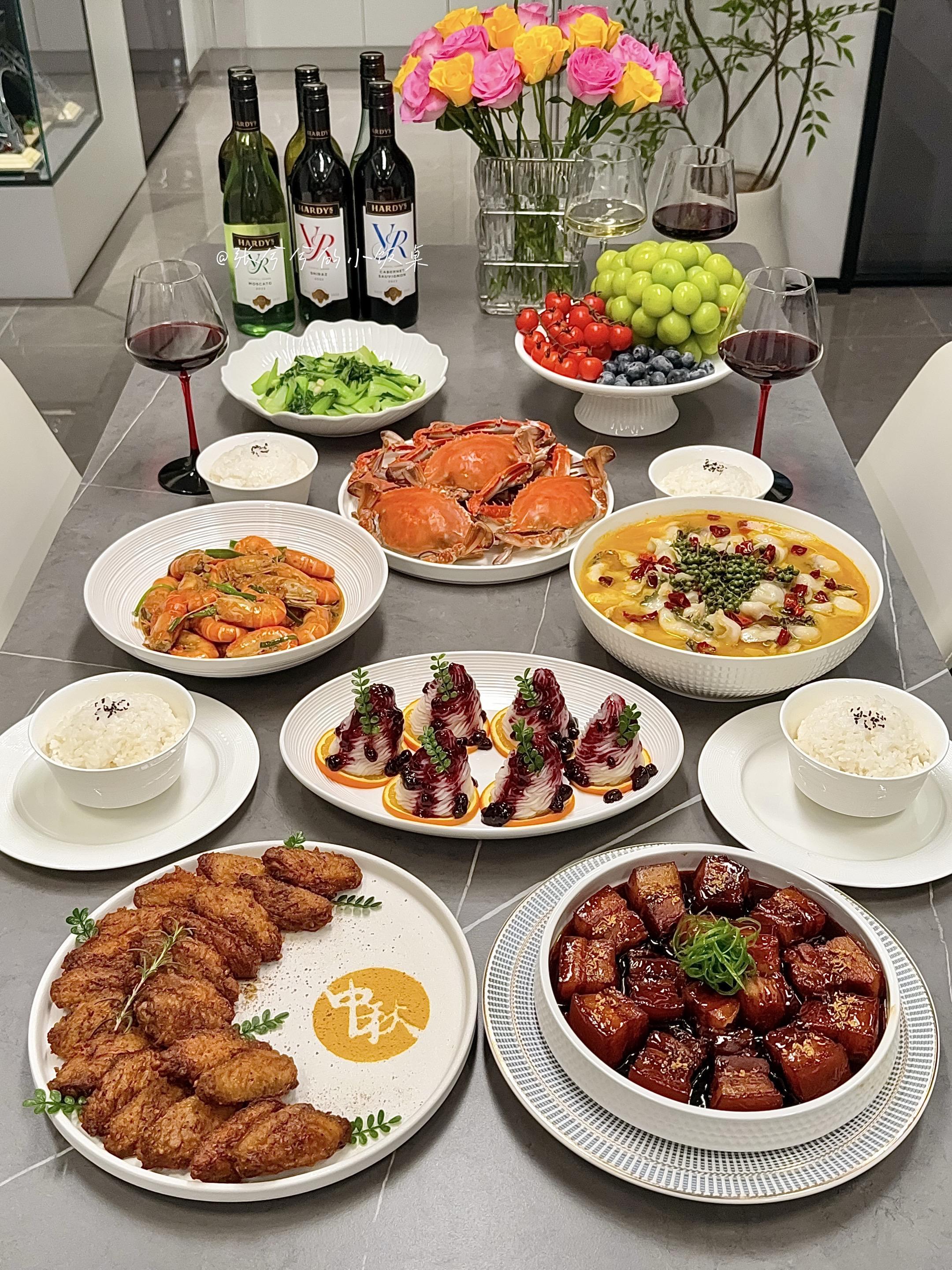 图2️⃣:椒盐鸡翅➕香橙蓝莓山药➕蒜香罗氏虾➕桂花红烧肉➕清蒸梭子蟹➕金汤鱼片➕清炒上海青