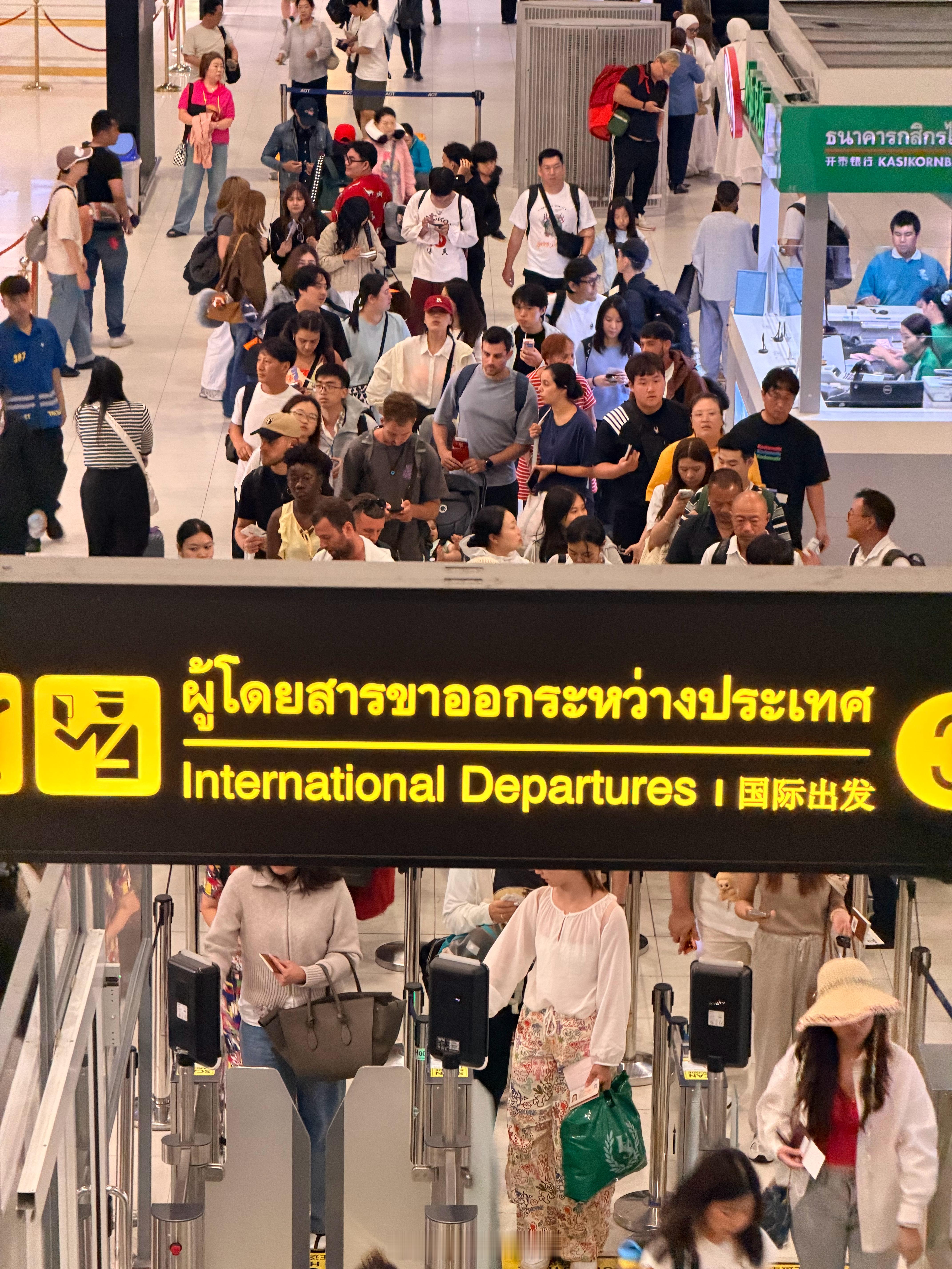 中国人挤满国外景区游客发声晚上10点的泰国曼谷素万那普机场