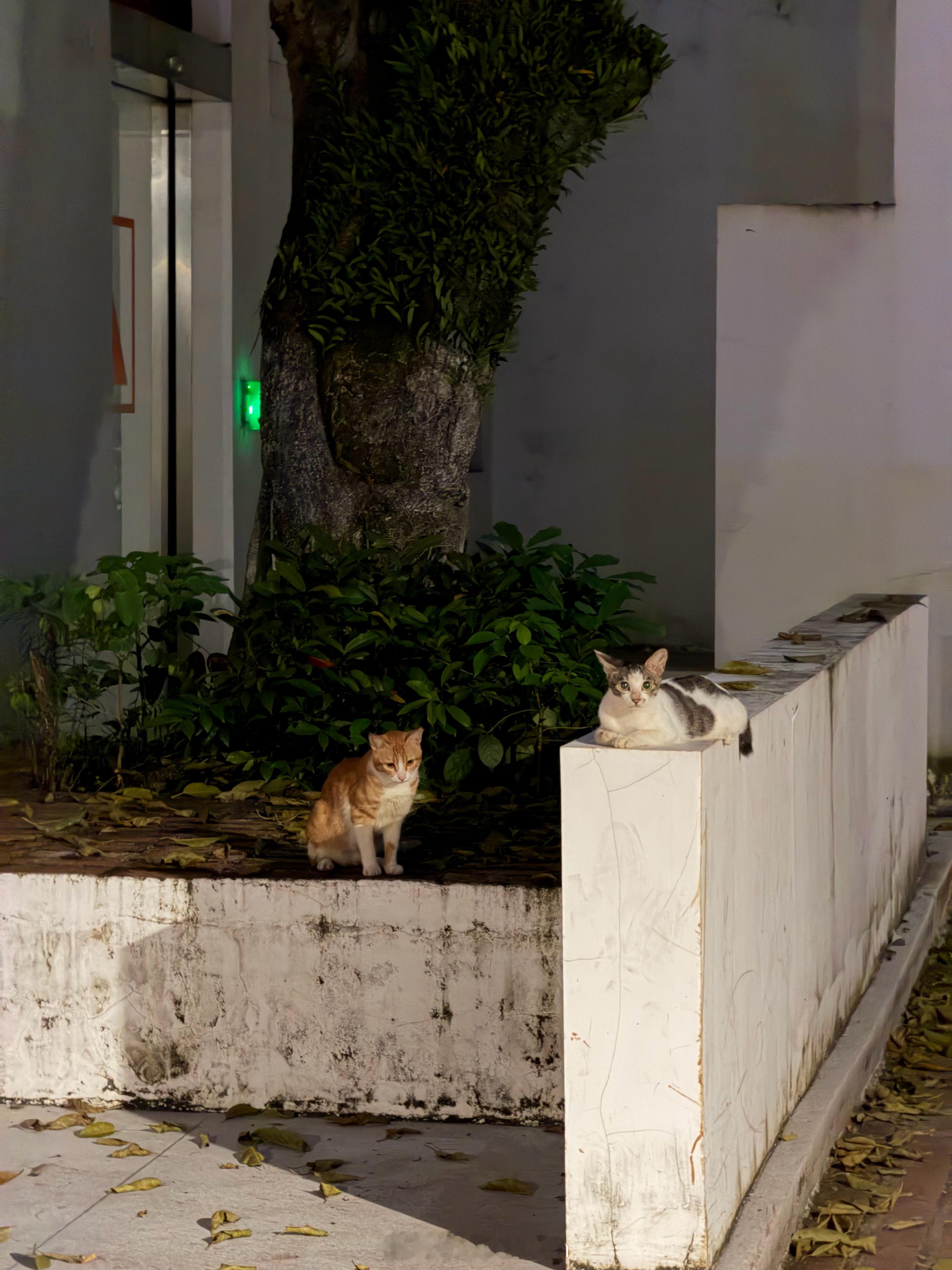 晚上看到一只猫咪通体雪白,头上却血红一片,以为它受伤了,喵喵叫着呼唤它,想看它怎