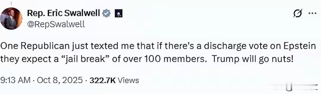 “爱泼斯坦的名单”要给大家看了。可能会有超过100位共和党议员准备签字同意公开。