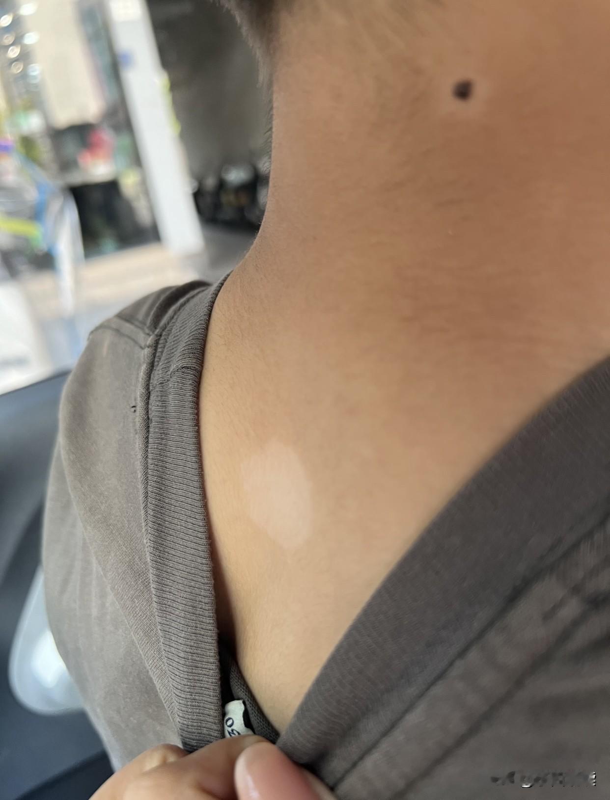 不知道为什么,突然发现儿子身后出现了两处白斑,连一颗痣都被白斑包围了。有人知道这