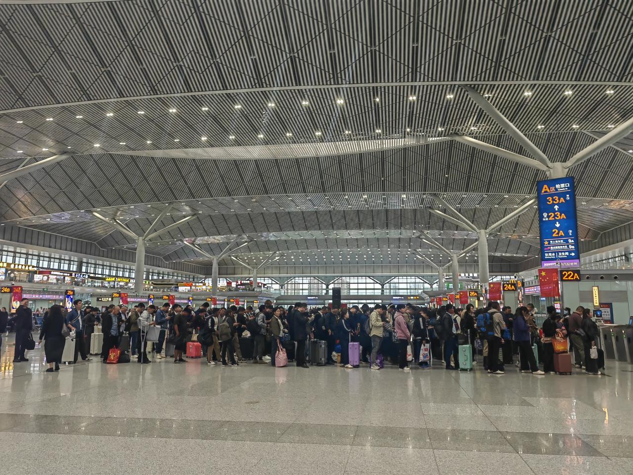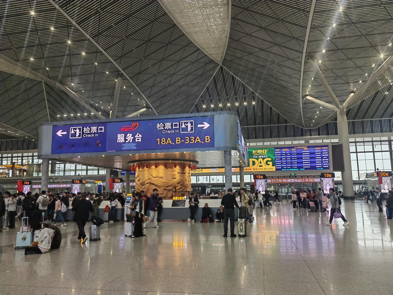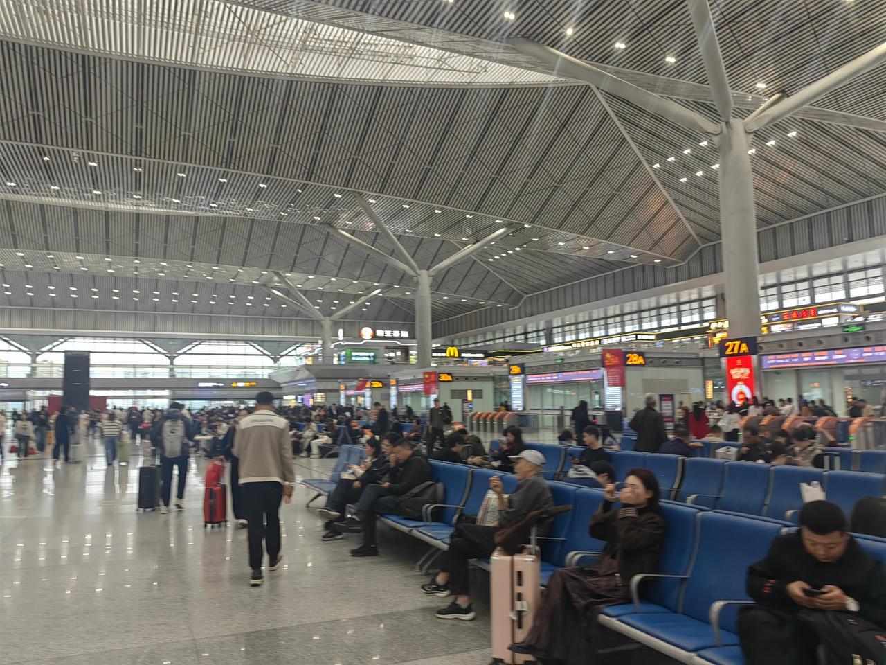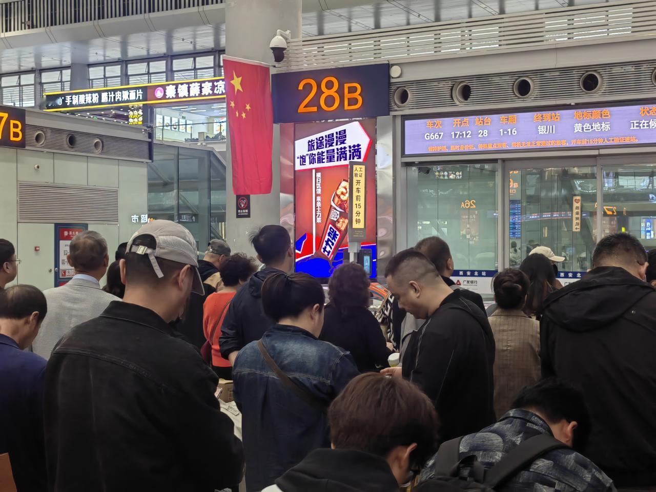 2025年10月9日下午五时,西安北站仍然挤满了返程旅客。从高铁时刻表看,好多人