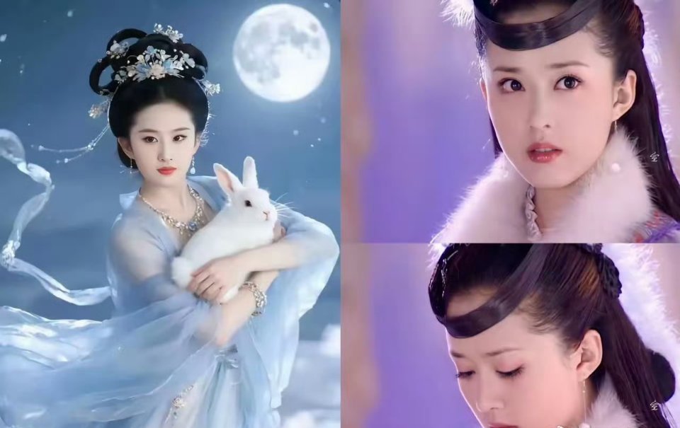 对比陈红和颜丹晨的嫦娥,刘亦菲显然不够冷清,太甜了!