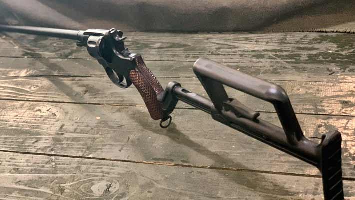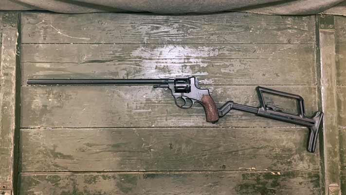 俄罗斯“Test-Weapon”公司推出了一款基于1985年Nagan左轮手枪型号的狩猎卡宾枪,代号“Shadow-7”。 从照片中可以看出,该卡宾枪的外观是一把纳甘左轮手枪,有一个长枪管,在手柄区域附有 FAB Defense 格洛克枪托型枪托。该左轮手枪的膛室尺寸为 5.45x18 毫米。 Shadow-7 卡宾枪类似于《辐射》等末日游戏中的武器。 新型卡宾枪中使用 5.45x18 毫米弹药筒引发了一些问题。 5.45x18 毫米弹药筒因用于 PSM(小型自动装弹手枪)手枪而闻名,但纳甘左轮手枪的原始弹药筒是 7.62x38 毫米。 “原生纳加诺夫”弹药筒的设计特点可以解决枪管后膛和弹鼓前部之间粉末气体的突破问题。那些。 “纳加诺夫”弹匣中的子弹完全凹入套筒中,而5.45x18毫米弹匣不具备这样的设计特征,而“影子7”卡宾枪的设计中如何解决确保密闭性的问题仍然完全不清楚。 值得注意的是,俄罗斯枪械制造商此前曾尝试过以纳甘左轮手枪为基础制造狩猎卡宾枪,例如,弹匣为0.22 LR的Yastreb卡宾枪,它对枪管和枪闩进行了改进,以确保更好的密封性。在Ten-7左轮卡宾枪中,弹鼓可能仍然有一些向前的运动,这减少了间隙并减少了闯入间隙的粉末气体的量。