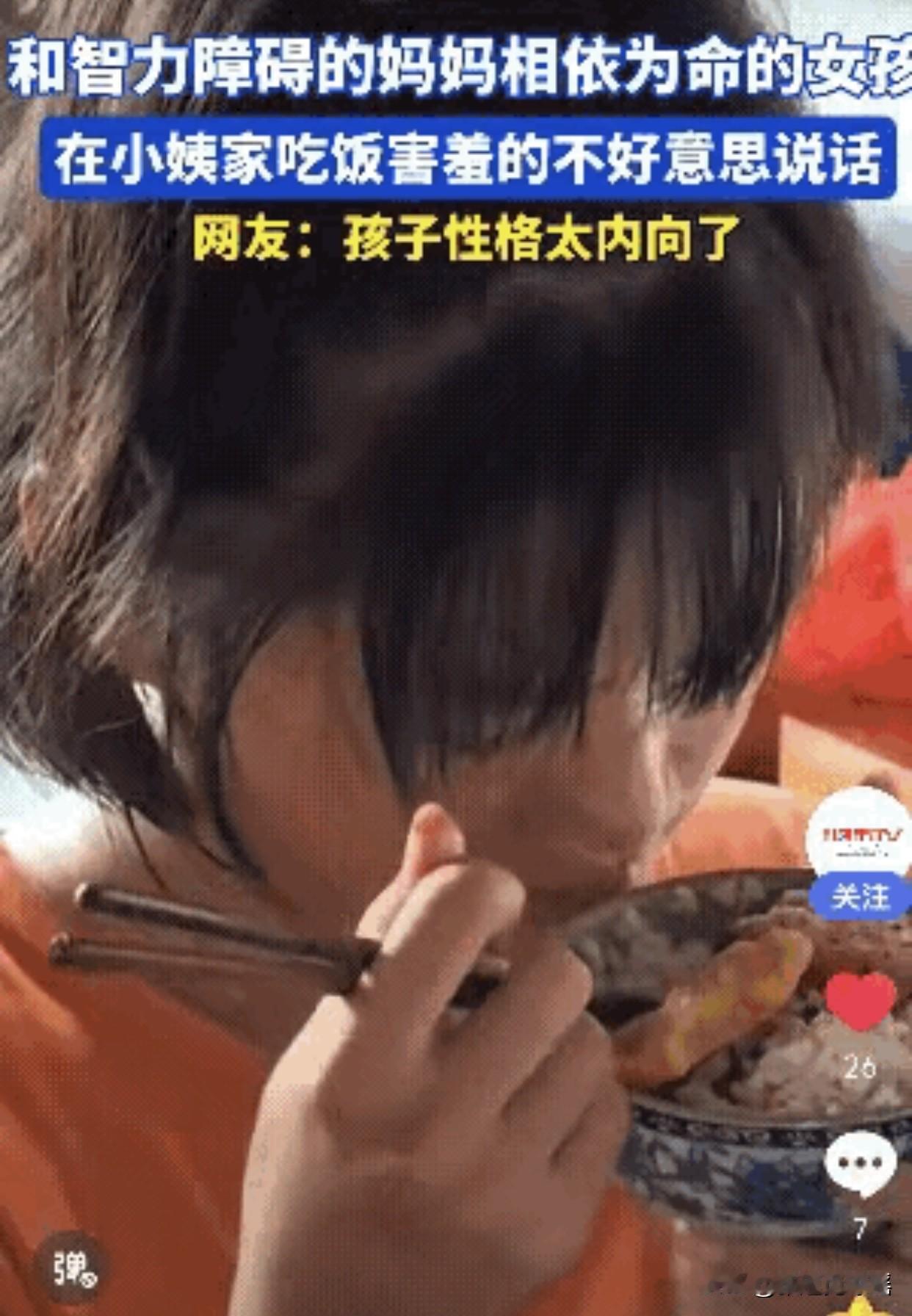 “懂事的让人心疼!”广东一个女孩去小姨家吃饭,碗里放着两大块肥肉。小姨轻声问她:“吃这么大肥肉腻不腻呀?”孩子捧着碗,害羞地笑了笑,小声说:“腻。”那声音轻轻的,听着就让人心疼。 后来才知道,她妈妈智力有障碍,母女俩相依为命。说实话,这种家庭的孩子都特别早熟,她的害羞不是怕生,而是生活给她的一份沉重。 但我总觉得,这样的孩子骨子里有种特别的坚强。你看她虽然害羞,却还是礼貌地回答,乖乖吃饭。生活可能给了她不少苦头,但她没有被压垮。 小姨那句“不要害怕”虽然简单,却特别温暖。我觉得我们身边可能也有这样的孩子,他们需要的不是同情,而是真诚的关心。有时候一句贴心话,一个微笑,或许就能给他们带来一点光亮。 真心希望这个女孩能越来越好,也希望每个在困境中的孩子都能遇到温暖他们的人。