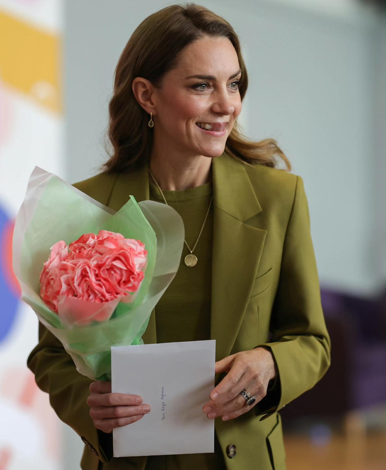 作为早教的一部分,今天凯瑟琳王储妃在牛津进行有关婴幼儿的活动。 凯瑟琳王储妃在牛津收到一束花和一封信,她这身橄榄绿色西装行头是来自贝嫂品牌。值得一提的是,外套与她的名字相似,西装叫Katherine,她本名叫Catherine。 作为国际预防失明机构(IAPB)的全球大使,10月9日,爱丁堡公爵夫人苏菲在伦敦药剂师大厅参加皇家眼科学院举办的活动,并与英格兰女足队守门员交谈,还有颁发奖项。