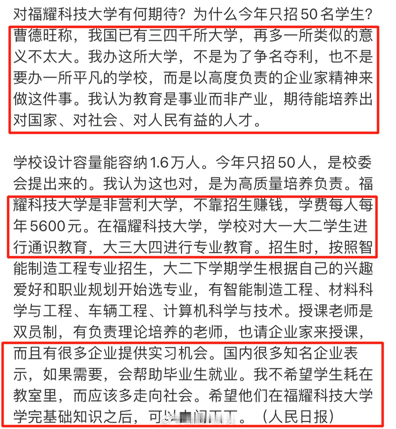 曹德旺回应福耀科技大学今年只招50人曹德旺谈对福耀科技大学期待[并不简单]