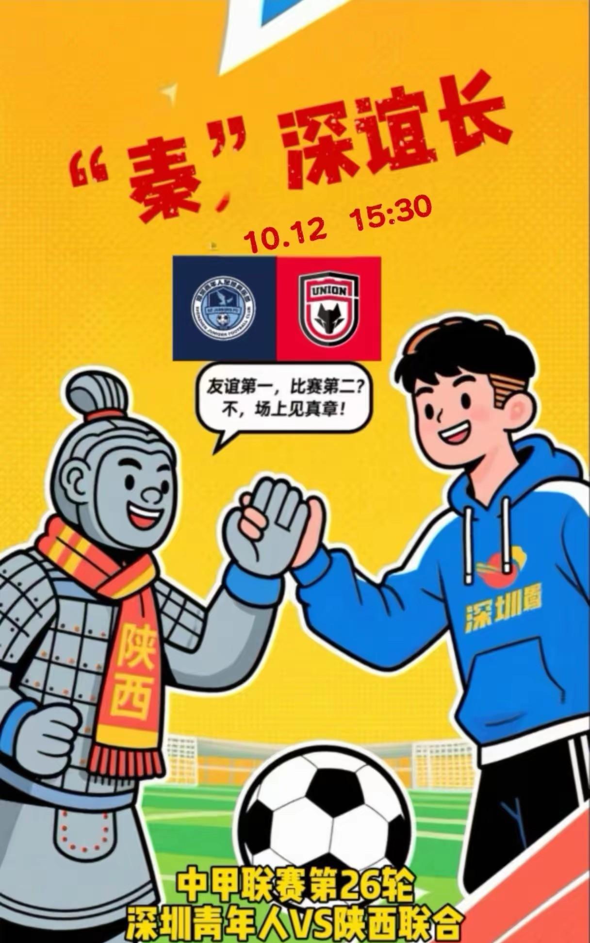 中甲第26轮对阵明天开始,深圳青年人一陕西联合安排在10月12日下午15時。 深
