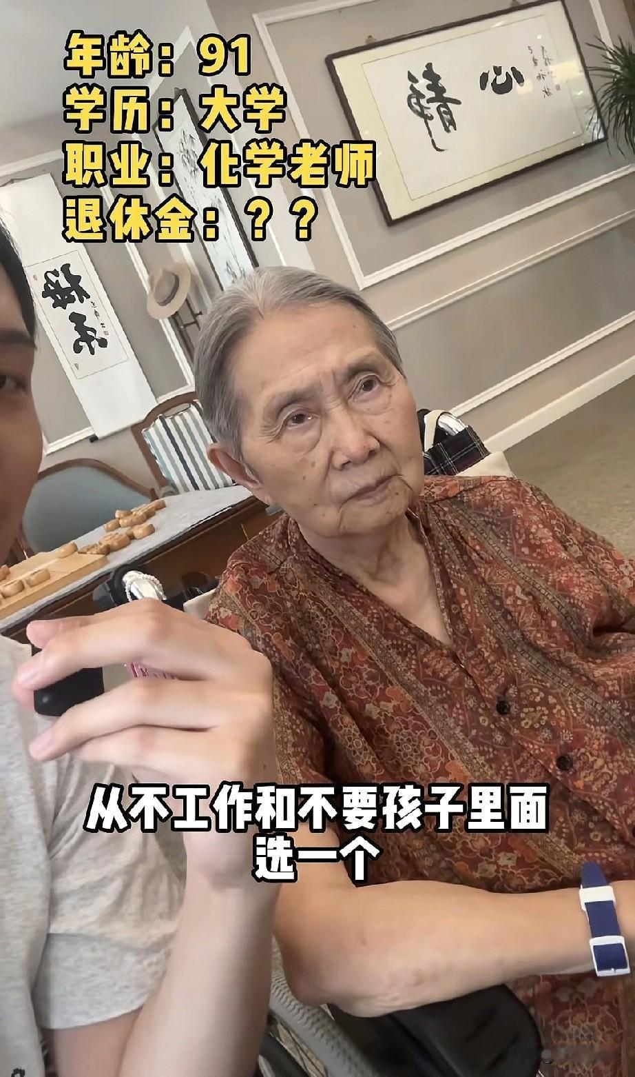 刷到一位91岁的退休老教师,已经在养老院住了12年。当初选择住进来,不是因为子女不孝,也不是对生活妥协,而是生活习惯实在合不来——她早起,家人却爱睡懒觉;她到点要吃饭,可家里没人动灶火。不想麻烦别人,也不愿凑合自己,她干脆搬进养老院,图个清静自在。 主持人问她:“不要工作和不要孩子,你怎么选?” 她答得干脆:“不要孩子。女人一定要有工作,手里得有自己的钱。” “那您退休金多少呀?” 老人顿了一下,笑眯眯回:“我不告诉你!” 镜头内外,笑声一片。 九十一岁的她,思路清晰、谈吐有力,活成了一股清流。 如今,越来越多的老人像她一样,主动选择养老院。这不是亲情淡漠,也不是无奈退让,而是两代人之间一份清醒的体谅——你有你的生活节奏,我有我的习惯岁月。硬凑在一起,摩擦不断;分开住,又彼此牵挂。而养老院,成了一个平衡点。既不让子女操心,也让自己过得舒服。 比起勉强凑合的“团圆”,这样的选择,更像是活明白了——知道什么时候该坚持,什么时候该放手,什么时候该好好善待自己。 毕竟,好好爱自己,从来不分年龄;舒心的日子,什么时候开始都不晚。