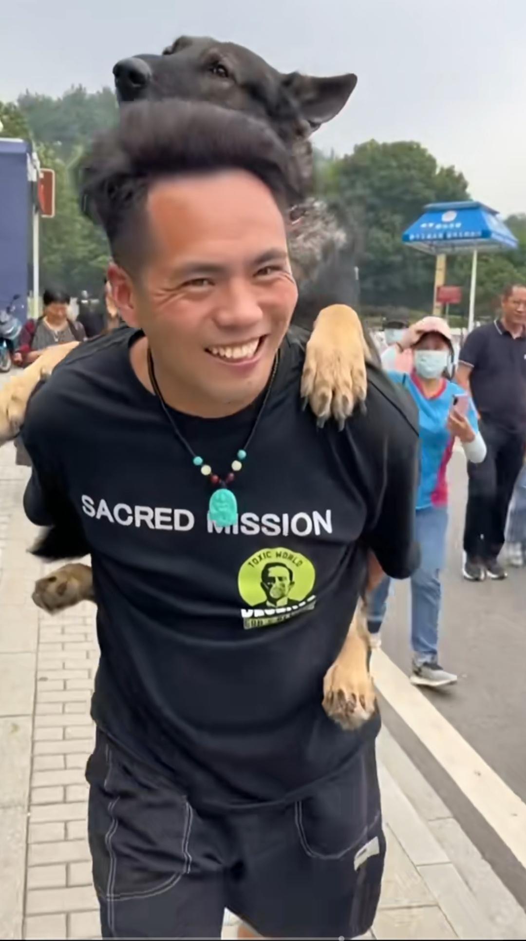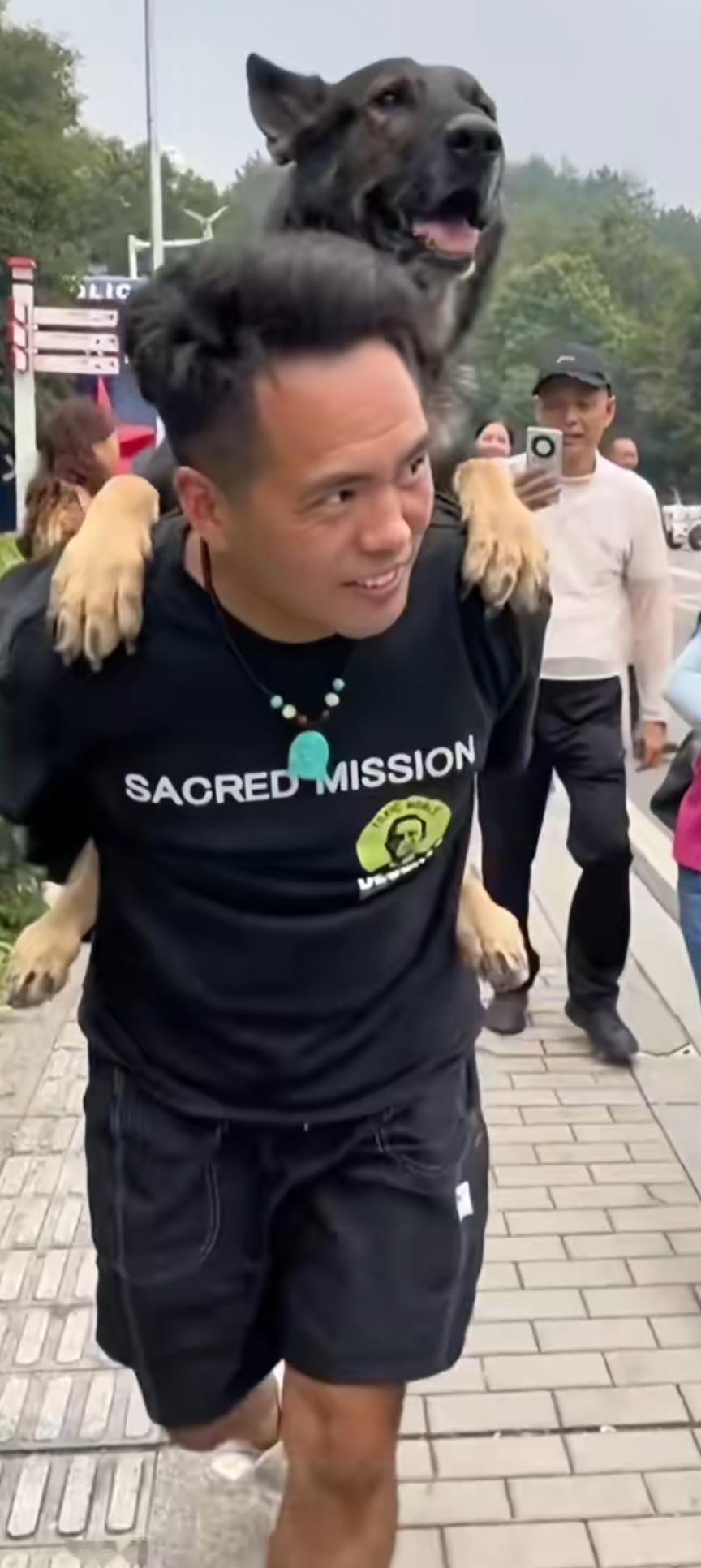 因为我的狗太累了,他不想走了,没办法,我只能背着他。爆料