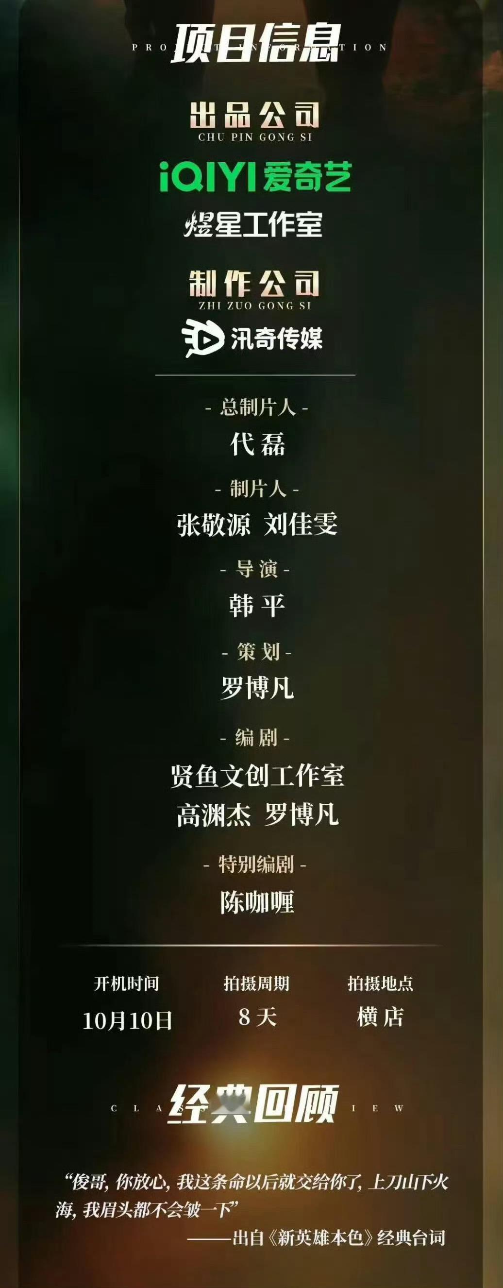 新英雄本色刘萧旭《新英雄本色》今日开机,刘萧旭✖️甄子奇,海报有内味儿了~新英雄
