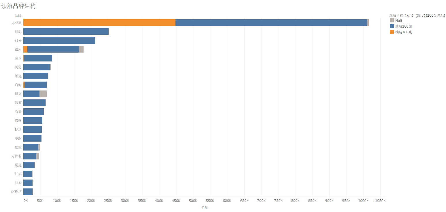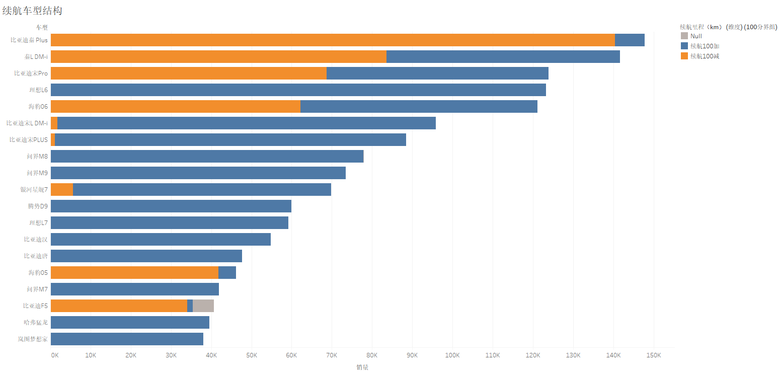 连银河、奇瑞、领克、启源、深蓝这些十几万的品牌,都做到了绝大多数销量靠续航100以上的车型实现。