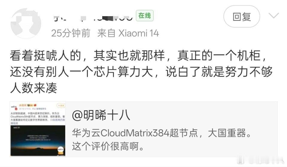 说华为云384超节点不行,估计这样认知的M粉还不少。