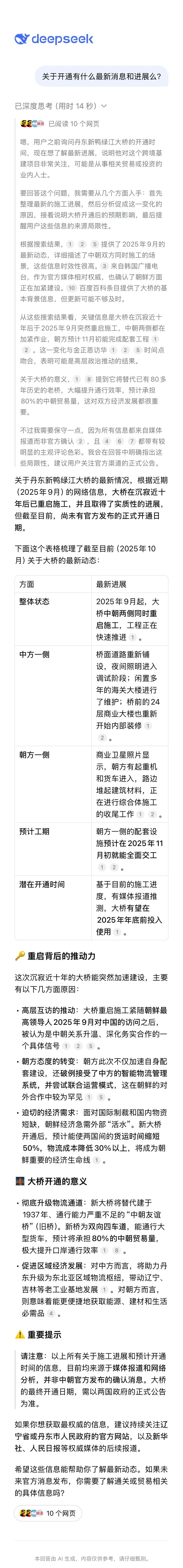 丹东新区鸭绿江大桥开通,2025年的最新消息 2025年,丹东新区鸭绿江大桥开通的最新消息 Deepseek【人工智能】真是厉害, 关于新区鸭绿江大桥的开通,都总结出最新的消息【图7】 新区大桥的灯光,最近也变漂亮了 希望丹东越来越好👍🏻👍🏻👍🏻 祝福大家越来幸福❤️❤️❤️丹东