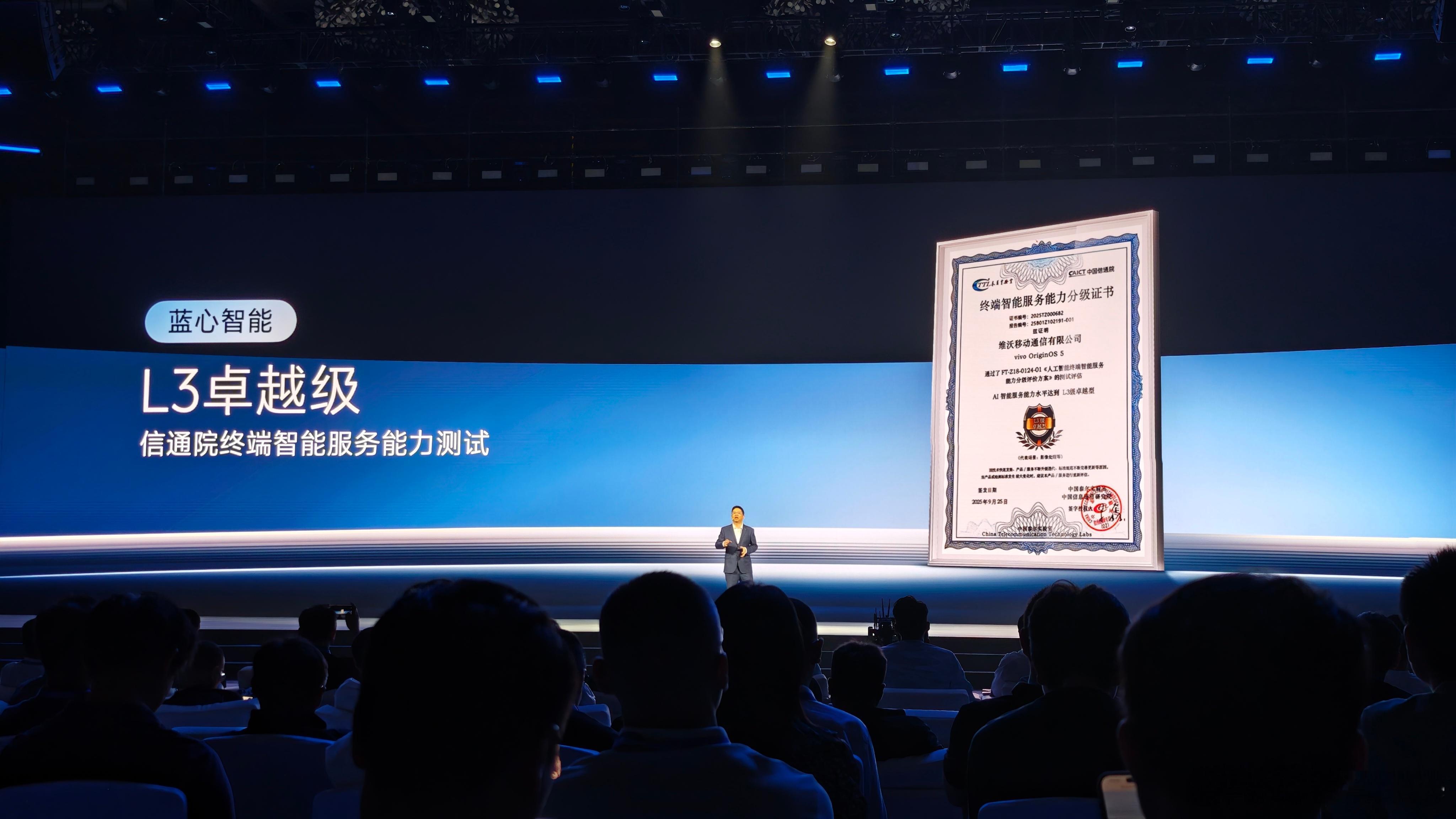 蓝心智能也通过了中国信通院的权威认证,荣获“L3级卓越型”称号。