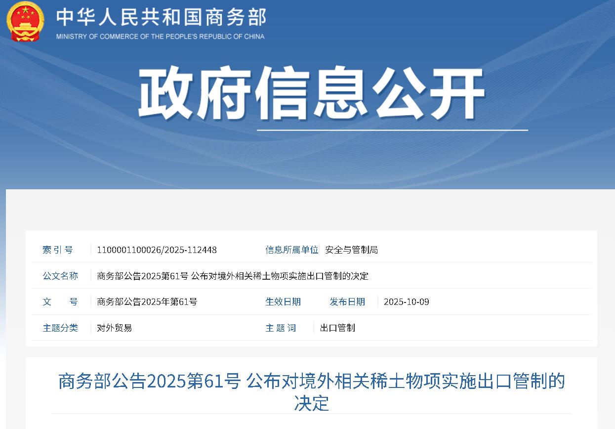 [下雨]出大招了,最严格稀土技术出口管制政策来了。西方傻眼了,还可以这样玩。国庆后上班第一天,商务部就发布重磅公告,宣布对稀土相关技术及境外相关稀土物项实施出口管制。中国稀土技术出口迎来强监管时代。 过去全球要搞高端制造,绕不开中国的稀土资源,但很多人没意识到,真正厉害的不是矿,而是后面的那套复杂技术。 如今中国不只是把稀土作为一种宝贵资源看,更是把整条产业链的技术牢牢守住,关上了那扇外流的大门。看过这轮新政策,才明白管控稀土不是单单说资源紧缺得涨价,而是要卡住高端技术的话语权 无论是稀土的开采办法,还是那些能让元素分离纯净的技术,甚至用稀土制造特殊磁材料的全套工艺,都必须有官方许可才准出境。 之前美西方可能还想着拿点技术配合资源再合作就能绕道走,现在这条路直接被堵死了。谁要再敢不按规矩来,不光是在中国本土守得紧,连带着国外企业用到中国稀土搞产品,也逃不出中国的视线。 中国将技术全链锁紧就是在全球高科技竞争里把主导权抢回来。既然国外对咱们芯片等领域频频下手,中国也用自己的杀手锏稳住阵脚。 西方原本习惯了中国当“原料库”,突然技术门槛立起来了,他们只有干瞪眼的份,尤其是像光刻机所需的高端材料,占据主导的还是中国,缺了中国这些技术,西方真的没得选。 中国除了守住自家技术,还有个大动作,就是把技术出口的“门槛”设得超高,不管是开采、分离、冶炼还是磁材生产,都让那些本想抄捷径的外国厂商吃不了兜着走。 有的技术连带设计图纸、工艺参数这些看似不起眼的“小细节”也列入了管控范围,哪怕只有一丁点中国技术成分,都得经过层层审批 这种操作和国外那套“长臂管辖”有点相似,但中国玩得更精细,世界供应链的“安全区”被中国一步步收紧了。 稀土是全球新科技大格局里的“支点”,西方嘴上说要自主掌控,无论是澳大利亚还是美国,都搞不出来像中国那么高纯度、低成本的稀土产品。 现在中国在出口上严格审批,直接让西方公司得重新盘算现有路径,比如加大库存,甚至得割肉买单提价,还得防着技术别被卡住。 这还不止于资源和材料本身,关键是中国有意把技术封锁、防渗漏做成一道几乎密不透风的防护墙,产业链里的每一个核心技术节点都紧紧抓在自己手里,也是在全球产业分工里设立新的游戏规则。 往后稀土产业链的主导权掌握在自己手里,也意味着全球高科技未来的底层构建由中国说了算。 新规还能灵活机动,根据形势变化“开关门”,国外对中国科技越打压,稀土技术出口就更紧一分。就算合作有需要,也能针对具体情况再逐案审批,这既能保安全,又能灵活应对变化 这一连串变革就是用“技术主权”设下一道厚实的保护墙。中国已经从资源出口转型成拥有技术、产业规则的制定者。从今往后,谁要吃中国这碗稀土饭,就得学会尊重中国定的规矩。