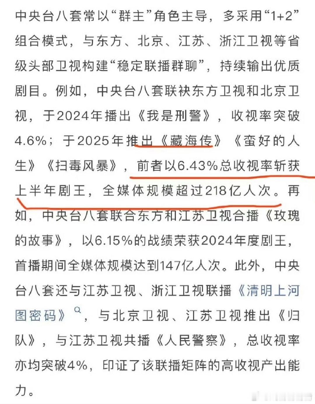 藏海传总收视率超过6%2024年-2025年总收视率超过6%的仅有4部,而《藏