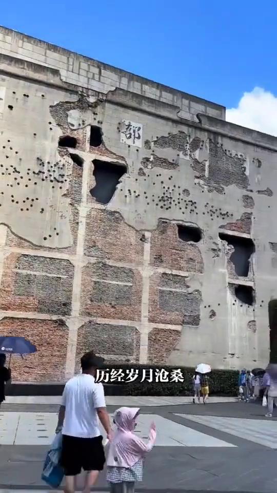 淞沪会战战场遗址。 你可以轻轻划过,但能给英雄们留下一束电子花吗?这是中国最坚强的大楼,也是淞沪会战最后的战场,它就是四行仓库。目光所及,墙体上密密麻麻的弹孔,每一个都是那段血火交织岁月的真实见证者。那8个醒目的炮弹无声诉说着8年全面抗战的艰难困苦。墙上400多个枪眼对应着当年在此浴血奋战的400多位英雄。 这座仓库建于1931年,历经岁月沧桑依然屹立不倒。墙体上的每一处伤痕都是先烈们以血肉之躯誓死保卫祖国,捍卫人民的历史印记。让我们一起停下脚步向这些英雄致敬,让这份爱国情怀永远流淌在我们的血脉之中。