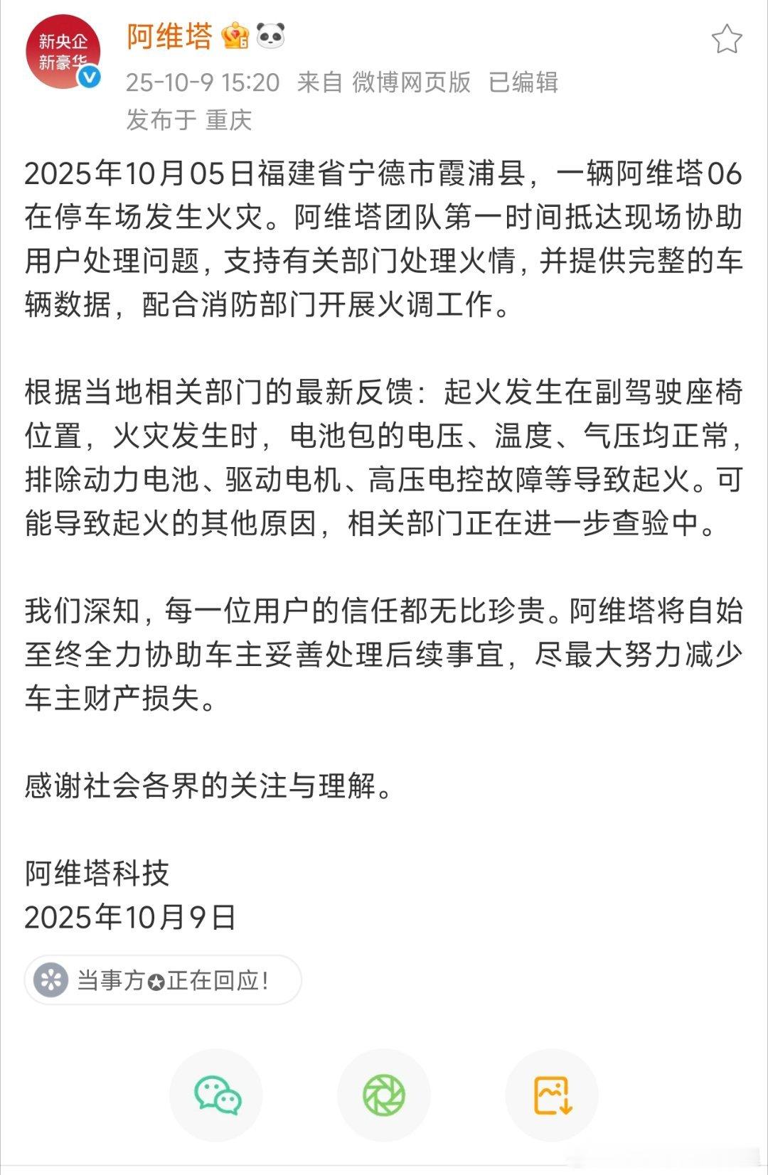 10月9日阿维塔官方正式回应