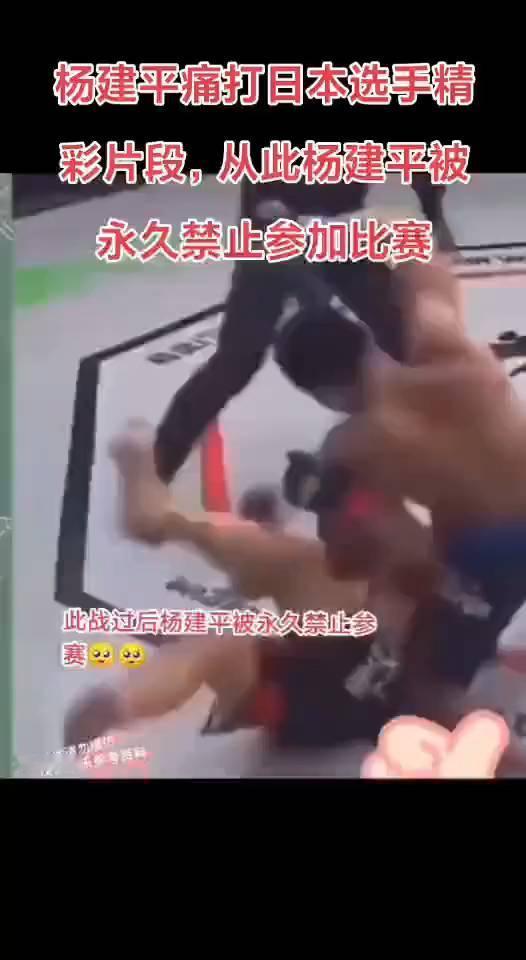杨建平痛打日本选手精彩片段,从此杨建平被永久禁止参加比赛。 此战过后杨建平被永久禁止参加比赛。