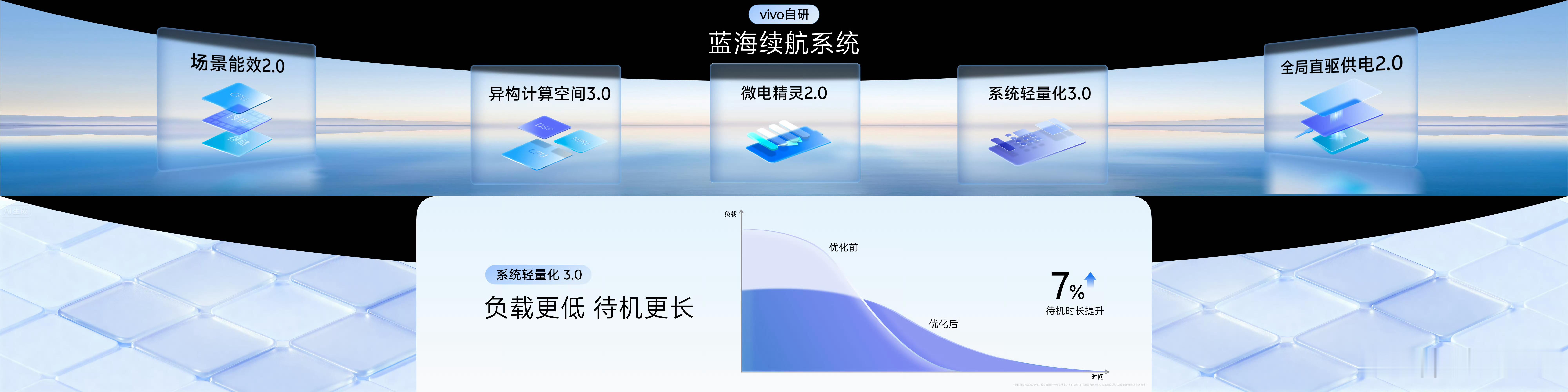系统轻量化3.0,负载更低,待机更长,待机时间提升了7%。