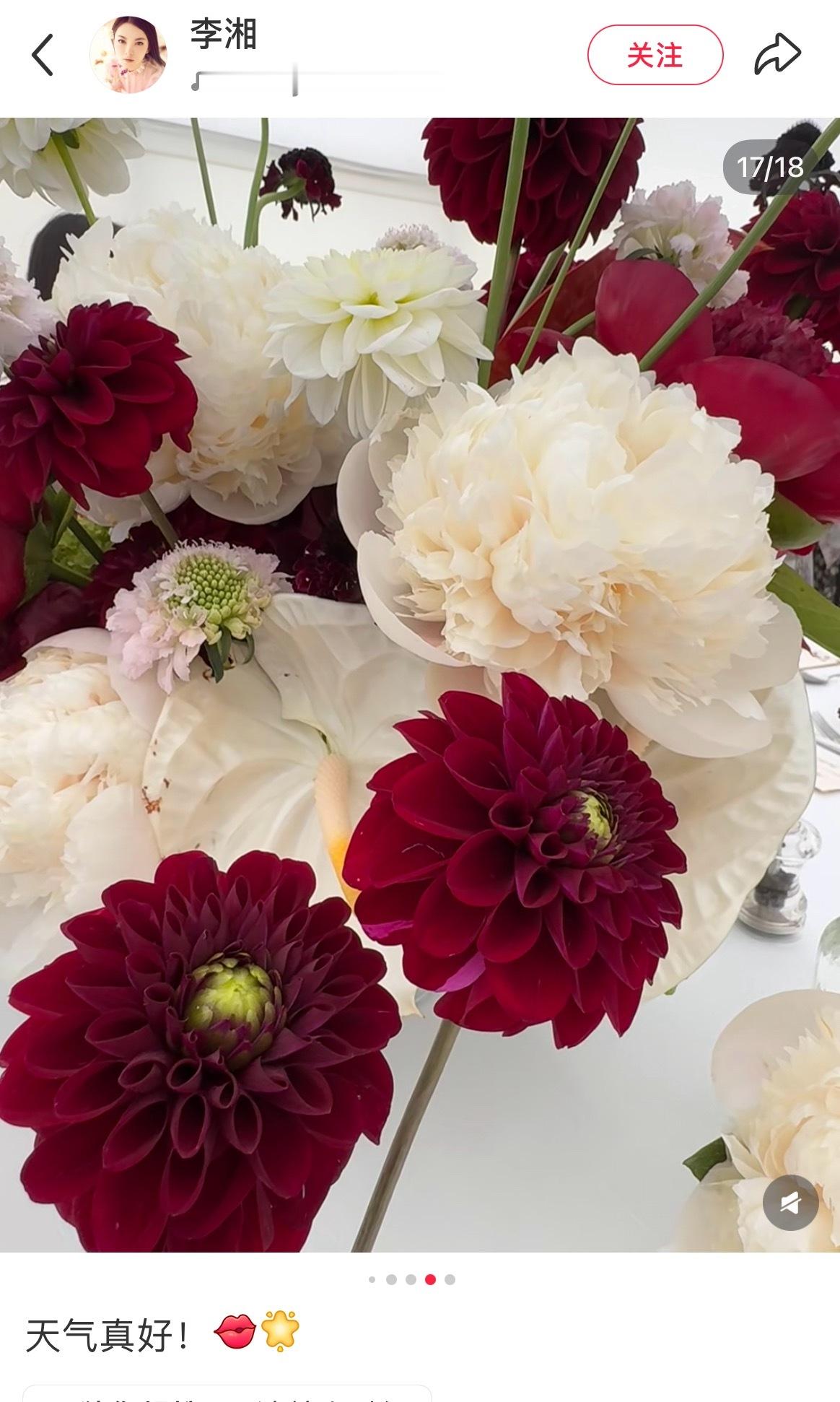 李湘发 花李湘鲜花照片除了王诗龄,李湘最喜欢的应该是鲜花了,喜欢到什么程度呢,日常不管什么帖子都要带一张鲜花照片!女儿也是她心里最灿烂的花吧💐!