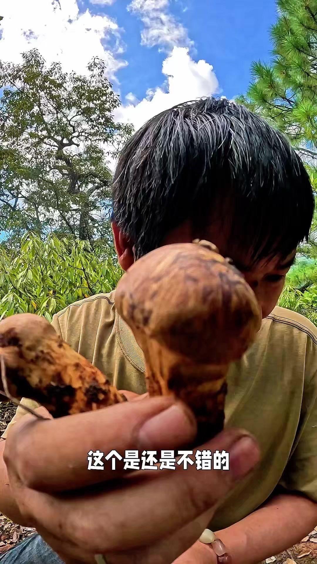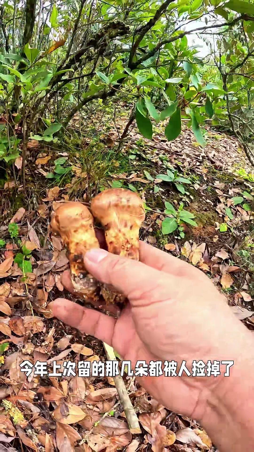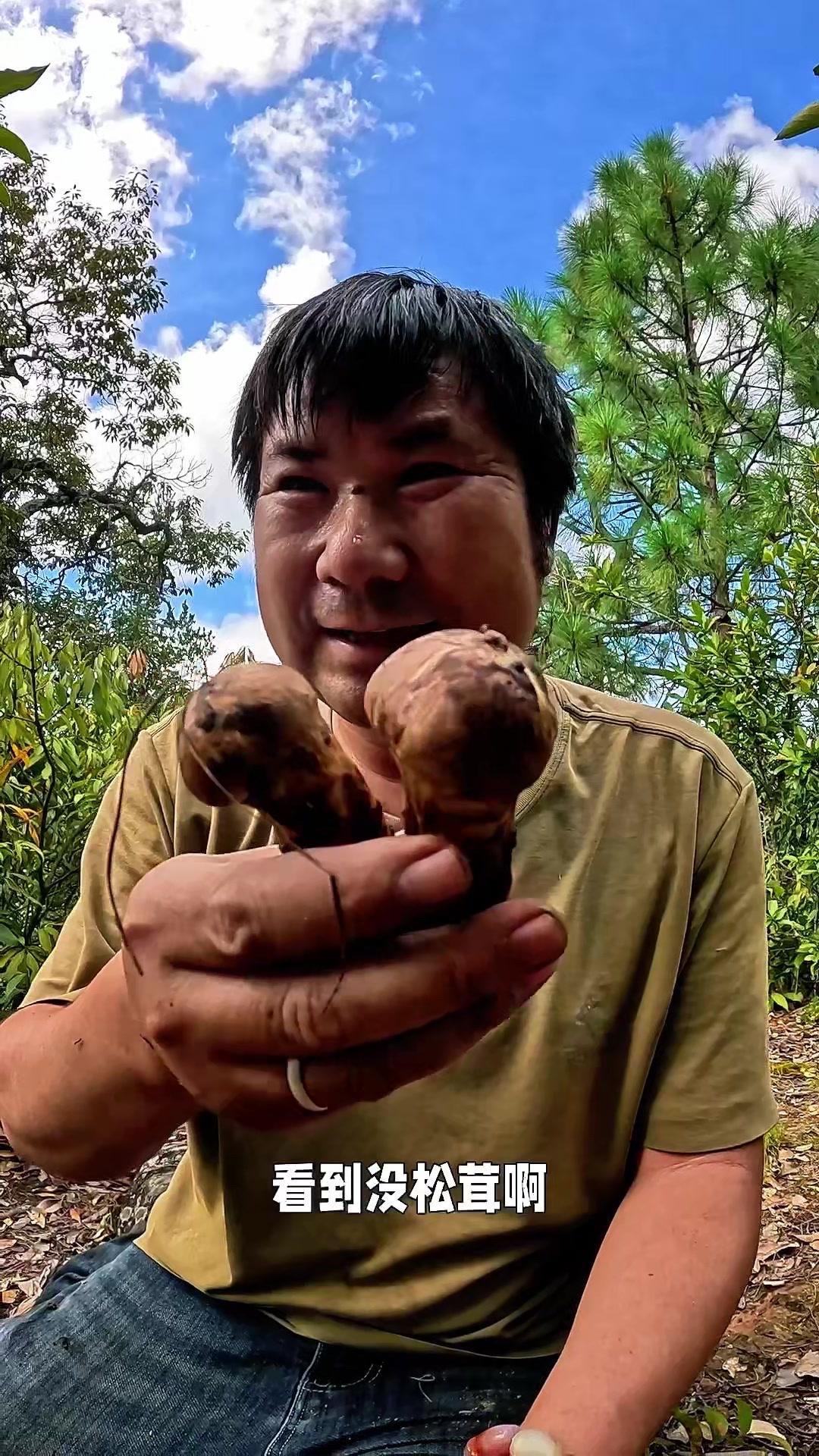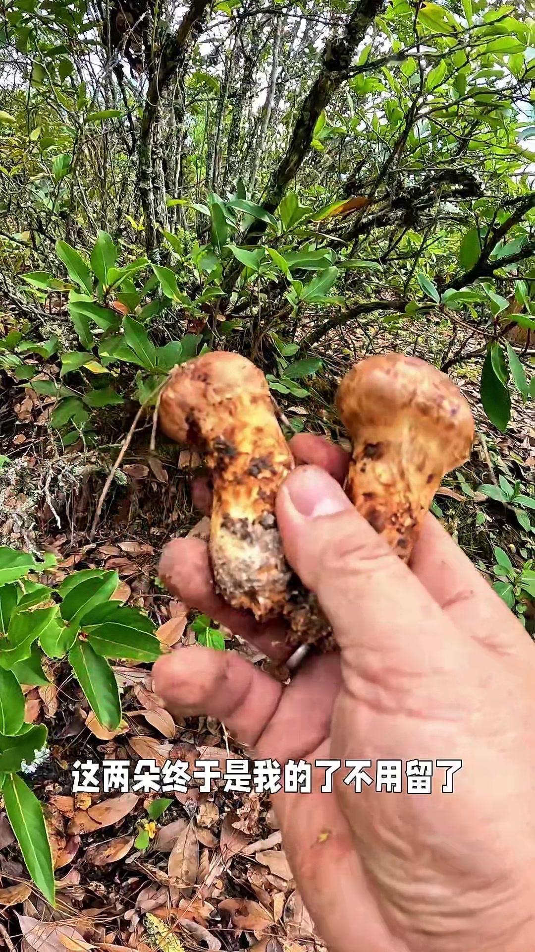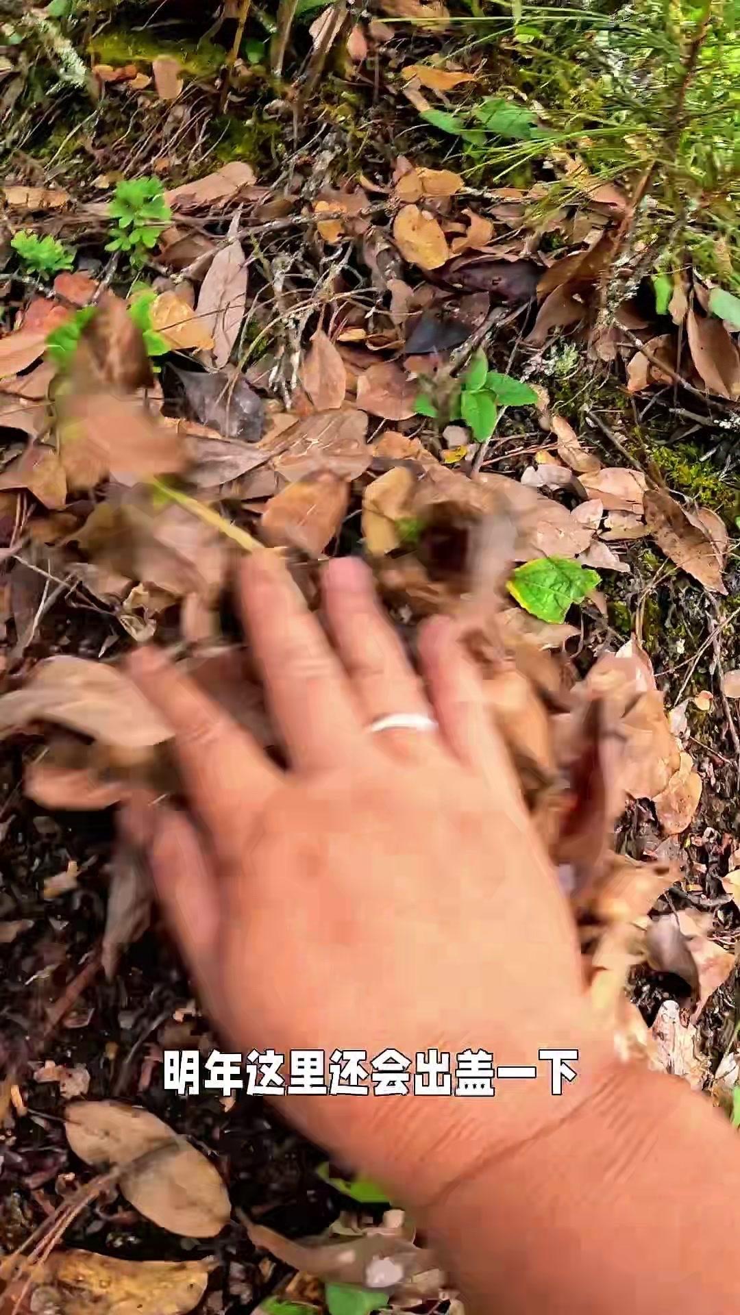 松茸特有的香味太治愈了,闻着就让人满足~不过捡的时候得小心,不能破坏它的生长窝,盖好才能让明年有更多收获呀。 今天的运气真不错,两朵松茸到手,成就感满满!