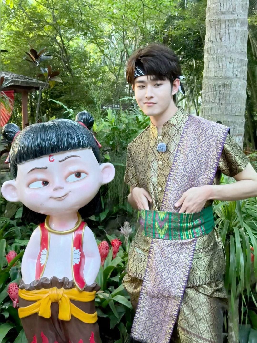 田嘉瑞模仿哪吒拍照也太好笑了吧,表情和姿势都模仿的超到位呀