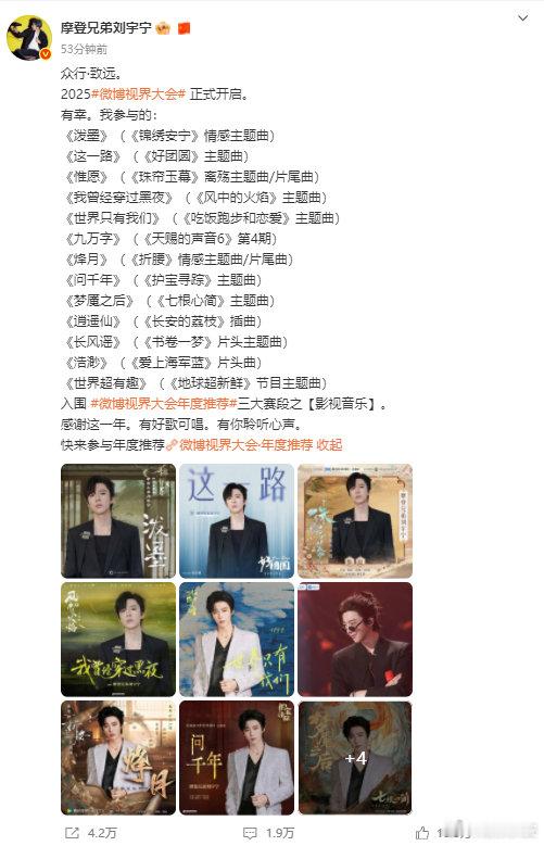 刘宇宁回应全赛道通吃2025微博视界大会正式开启。刘宇宁10部作品入围微博视界大会,6个赛道33项入围!全能艺人刘宇宁好优秀!刘宇宁众行致远,未来可期!