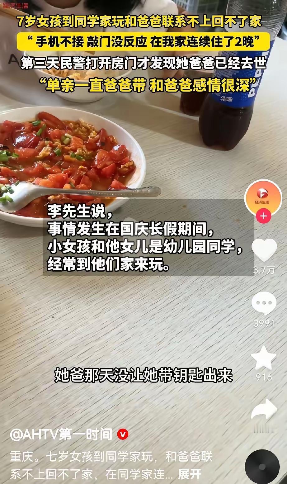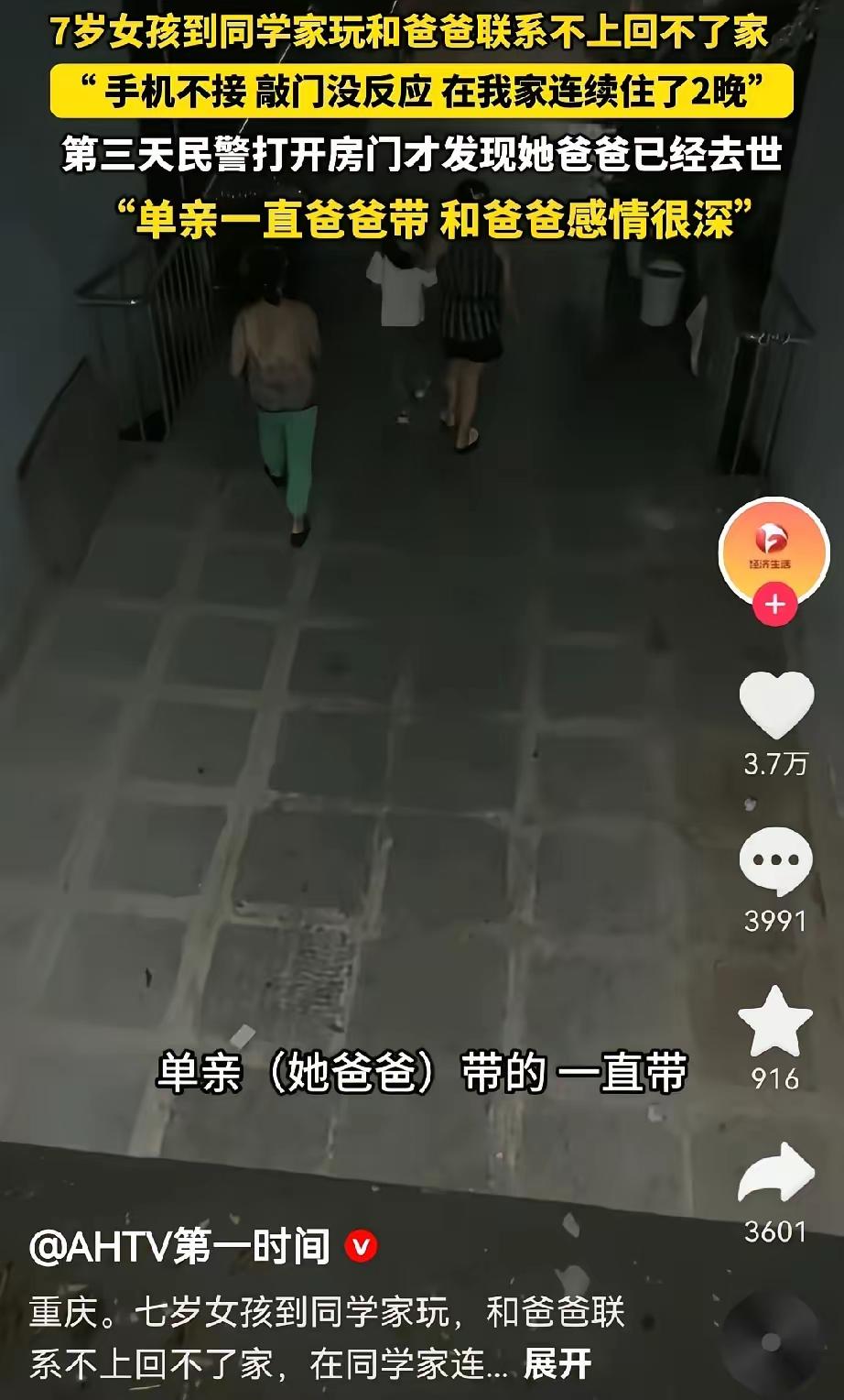 谁看了这事儿不心疼啊!一个7岁娃去同学家过节,开开心心的玩,玩完了就按平常那样等着爸爸来接,可没想到最后等来的却是和爸爸天各一方的消息! 单亲爸爸一个人把娃带大,平时得多不容易啊,这次没如约接娃,肯定是出了意外。 还好同学妈妈心细,觉得不对劲就赶紧找警察,不然真不敢想后续。只是这孩子才7岁,从小跟爸爸最亲,突然没了依靠,以后可怎么办? 说真的,单亲家长太难了,肩上扛着孩子的整个世界,连生病都不敢掉以轻心。咱们身边要是有这样的家庭,能搭把手就多搭把手。 你们说,要是当时能早点发现异常,会不会有不一样的结果? 平时看到邻居有不对劲的地方,你会主动多问一句吗?