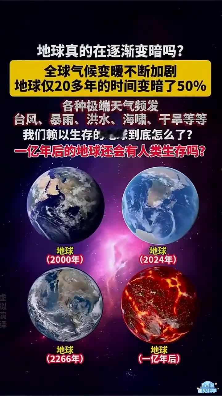 NASA报告称地球正在“变暗”,此事着实令人细思极恐。过去20年里,地球反射太阳光的能力显著下降。研究人员分析NASA 24年的数据后发现,地球反射的阳光有所减少,且北半球变暗的情况更为明显。 实际上,早在20世纪90年代就已出现“全球变暗”现象,当时人们认为这是太阳辐射减少所致。从50年代到90年代,美国地表接收的太阳能量下降了10%,苏联则下降了30%。2005年,又有说法称“全球变暗”现象结束,地表开始变亮。如今地球再度“变暗”,真不知地球的气候平衡会被搅成何种模样,未来气候变化所带来的影响或许会更加严重。 地球的奇怪现象 地球变化对比图 全球气象变化 地球太阳对比 月球发亮原理 太阳地球