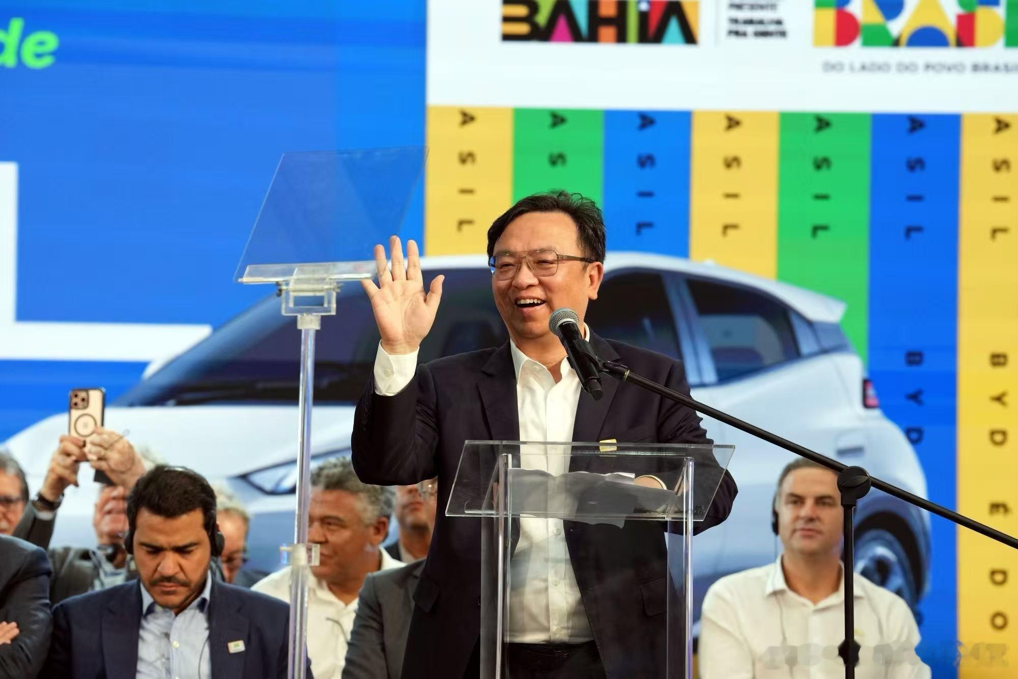 为了恭喜这位比亚迪第1400万辆新能源车的车主,船夫哥亲自前往巴西举办交付仪式。